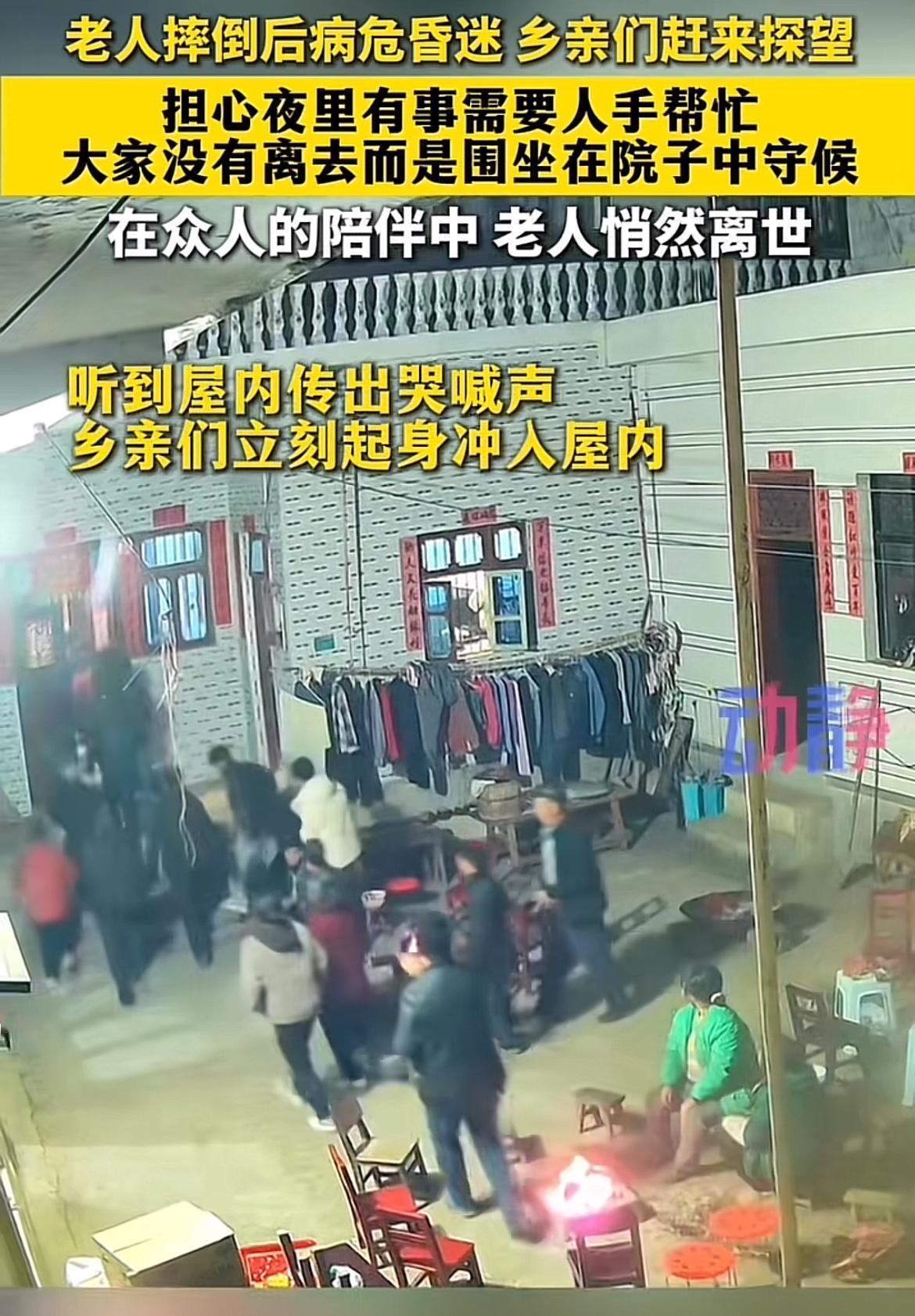 4月4日,贵州毕节的龙先生分享了一个超暖心的视频。他80多岁的父亲摔倒后病危昏迷,乡亲们知道消息后,每天都来家中探望陪伴,这一坚持就是四五天。 夜里,大家担心老人有事需要帮忙,都没离开,就围在院里守候着。龙先生本来心里慌慌的,但有了乡亲们的陪伴,他安心多了。在这个快节奏的时代,这样的邻里情太珍贵了。大家相互扶持,在困难时刻不离不弃,这不就是最淳朴、最温暖的人间真情嘛!