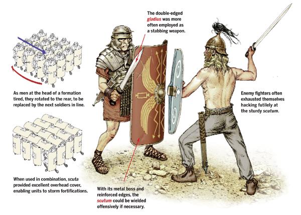 一块盾牌,撑起一个帝国:罗马军团的真正“外挂”,其实叫斯库图姆 很多人聊罗马军团,总会把焦点放在短剑格拉迪乌斯:近身、致命、干净利落。但如果把战场还原到真实状态——拥挤、泥泞、恐惧、队形推挤、视线被遮——你会发现罗马最可怕的从来不是剑,而是那堵会移动的“墙”。这堵墙就是斯库图姆(Scutum),罗马军团的长方盾。 你可以把斯库图姆理解成罗马战争机器的“底层系统”:没有它,罗马也许只是能打;有了它,罗马才像一台稳定输出、能持续扩张的组织。 1)它不是简单的“盾牌”,更像把普通人变成职业兵的工具 古代很多军队强在“英雄”,罗马军队强在“流程”。剑需要天赋、距离感和长期训练;盾则更像一种让人快速成为合格士兵的工具。斯库图姆的核心优势是覆盖面积大、形状统一、握持逻辑清晰:它像一扇门,从上到下给你全方位保护;中间的凸起和整体的弧度还能偏转打击、顶开对手、制造空间。 这意味着:就算你原来是农民、工匠、底层年轻人,只要进入军团训练体系,按标准动作练,很快就能形成“可用战斗力”。罗马的恐怖之处不在于人人都是高手,而在于它能把平均作战水平抬得很高,并且持续复制。这才是帝国能扩张的核心:把战争从个人手艺活,变成可批量生产的能力。 2)斯库图姆改变的不只是防御,而是战术战法 很多人以为盾就是防守。罗马盾更狠:它把防御动作变成进攻动作。军团经典打法的逻辑很简单—— 先用盾压迫、顶住、逼退你; 你一旦失衡、阵脚乱、视线被挡,短剑就从盾边“伸出去”——刺,而不是砍; 刺完迅速回收,再回到队形里继续推进。 关键在于“盾在前,剑在后;墙在前,攻击在后”。罗马军团不像很多部队那样上来拼个人勇猛,他们更像执行一套模板:推进—挤压—制造空隙—完成刺杀—恢复队形。战斗从“个人对砍”变成“队形碾压”,这才是罗马经常赢的根本方式。 3)“乌龟阵”不是魔法,是标准化带来的拼装能力 影视里常把“乌龟阵”(Testudo)拍得玄乎,其实背后只有一句话:当盾牌形状、尺寸、使用方法都统一,你就能把人拼成一个整体。长方盾比圆盾更容易严丝合缝地贴合,于是罗马士兵能在箭雨、标枪、投石面前,像带着一层甲壳一样推进。 这套战术不一定追求一击必杀,但它能一点点吃掉距离,把战斗拖进罗马短兵器最舒服的范围。罗马式战场哲学是:不求最漂亮的胜利,只求最稳定的推进。 4)它还是心理武器:秩序本身就是威慑 战争从来不只是技术,更是心理。对很多部落武装、临时拼凑的联军来说,最吓人的不是某个猛士,而是整齐划一的秩序:一排排大盾贴得严密、推进速度一致、徽记与颜色统一、还能用刀敲盾制造节奏声。对手会本能地感到——“我面对的不是一群人,是一台机器”。 机器的可怕在于:你砍倒一个,它不乱;你撕开一个口子,旁边立刻补上;你想靠恐惧让它崩溃,对不起,它的纪律就是专门用来对抗恐惧的。古代战场上,“整齐”本身就有杀伤力。 5)盾牌背后的王牌:标准化与后勤,让罗马能“持续打” 真正决定罗马能不能扩张的,不是赢一场战役,而是能不能持续打十年、二十年、五十年。斯库图姆之所以关键,是它适配罗马的标准化与后勤:盾坏了能修,配件通用;工坊能批量做;新兵补进来,拿到的装备与老兵一致;队形训练也不需要因人因盾调整。 当战争被标准化,军团就具备了“可持续性”。很多国家能爆发一波高潮,罗马能长期压着打。原因不是更勇敢,而是系统能力更强。 结尾:一块盾牌能挡刀,一堵盾墙能推翻世界 别再把罗马军团理解成“剑术更强”。罗马真正赢在组织能力:用一块盾牌,把个人变成集体,把勇武变成流程,把战斗变成工业。斯库图姆看上去只是木头、皮革和金属的组合,但它背后站着的是一个国家的训练机制、后勤网络、纪律系统和指挥体系。 所以,斯库图姆不是简单的装备,而是罗马文明发力方式的缩影: 一块盾牌能挡刀剑;一堵盾墙,能改写世界。