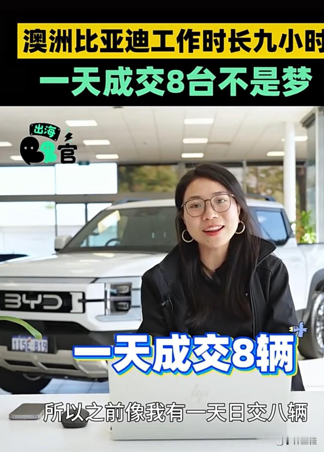 比亚迪海外销售:“比亚迪在海外算是自带流量,所以卖车卖起来就没那么费劲,不用费力的去找客源,基本都是客户自己上门,最忙的一天交付了8辆,一个月平均三四十辆完全没有问题!” 我早就说过了,比亚迪在海外的口碑,要比国内好太多了,国外可没有什么谐音梗的说法,也没有黑子! 10个老外中,应该有5个人知道比亚迪!这也是为什么比亚迪出海两年时间不到,海外销量能卖到100万辆的主要原因!