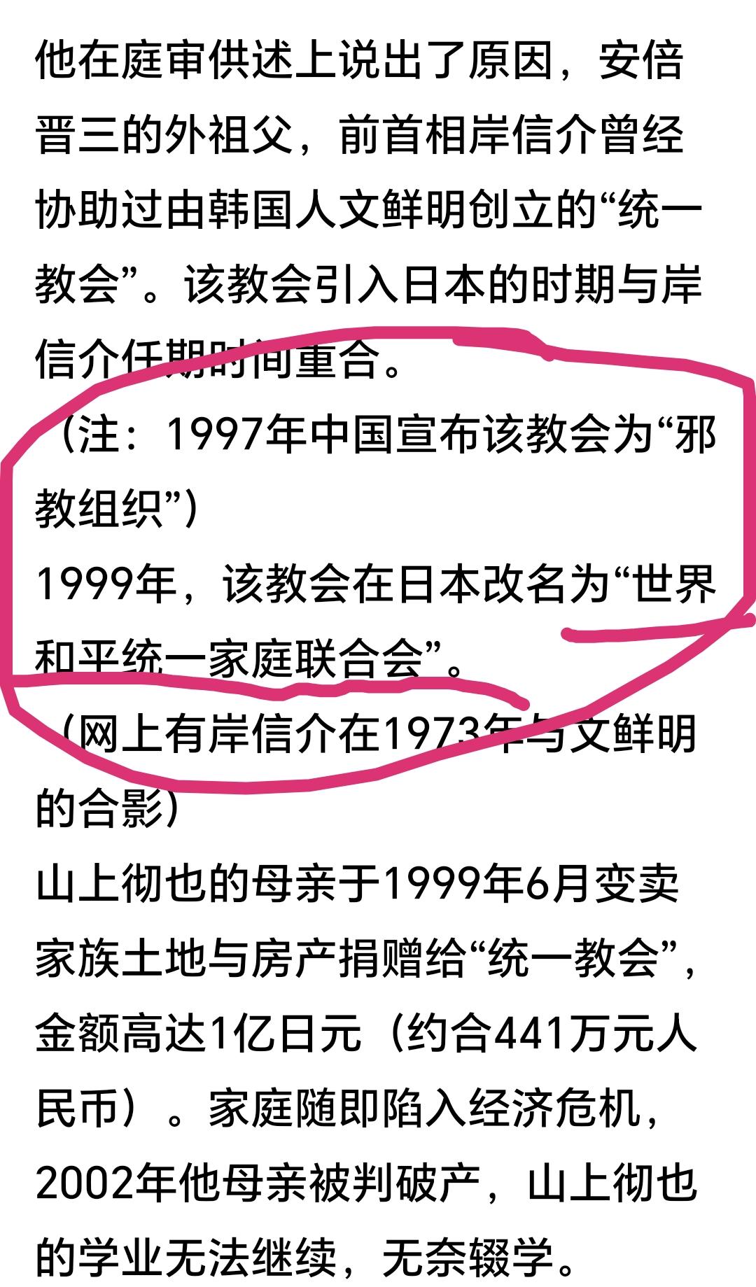 山下彻也终于被判了,顶格处理。辩方建议20年,检方要求无期。 日本基本没有死刑,所以之前江歌案的凶手陈世峰也只判了20年。这次山下彻也无期已经是顶格了。 其实这就又是一个被邪教毁掉的家庭典型案例。 韩国统一教会早在1997年就被我们认定为邪教组织。但是在韩国和日本还是一股很大的政治势力。 为非作歹就不足为奇了。 这个组织后来改名:世界和平统一家庭联合会。 世界和平,西方很喜欢打着这个旗号干着龌龊的勾当。 不过山下也不用为以后的生活发愁。如果能减刑出来,开个直播,中国人民的打赏都足以让他活下去。[偷笑] 点右上角关注我,我们一起去看这个魔幻的世界