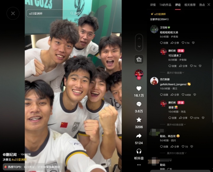 #范巴斯滕祝贺U23国足晋级决赛#U23亚洲杯半决赛,U23国足3-0击败越南U23,挺进决赛将战日本U23。赛后,蒯纪闻更新社媒晒全队在更衣室庆祝的视频,荷兰名宿范巴斯滕用荷语留言:“祝贺小伙子们!👏”蒯纪闻回复“谢谢”。#u23国足零失球进决赛#