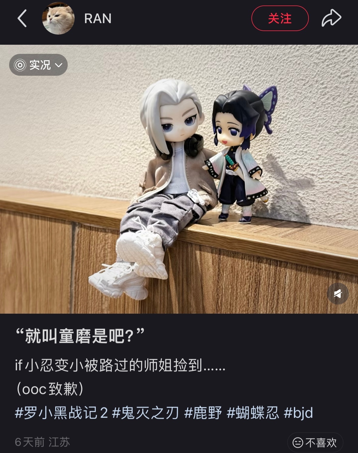 鬼灭之刃 蝴蝶忍应该是不喜欢猫狗这种全身长毛的~不是害怕~但是这个图很萌