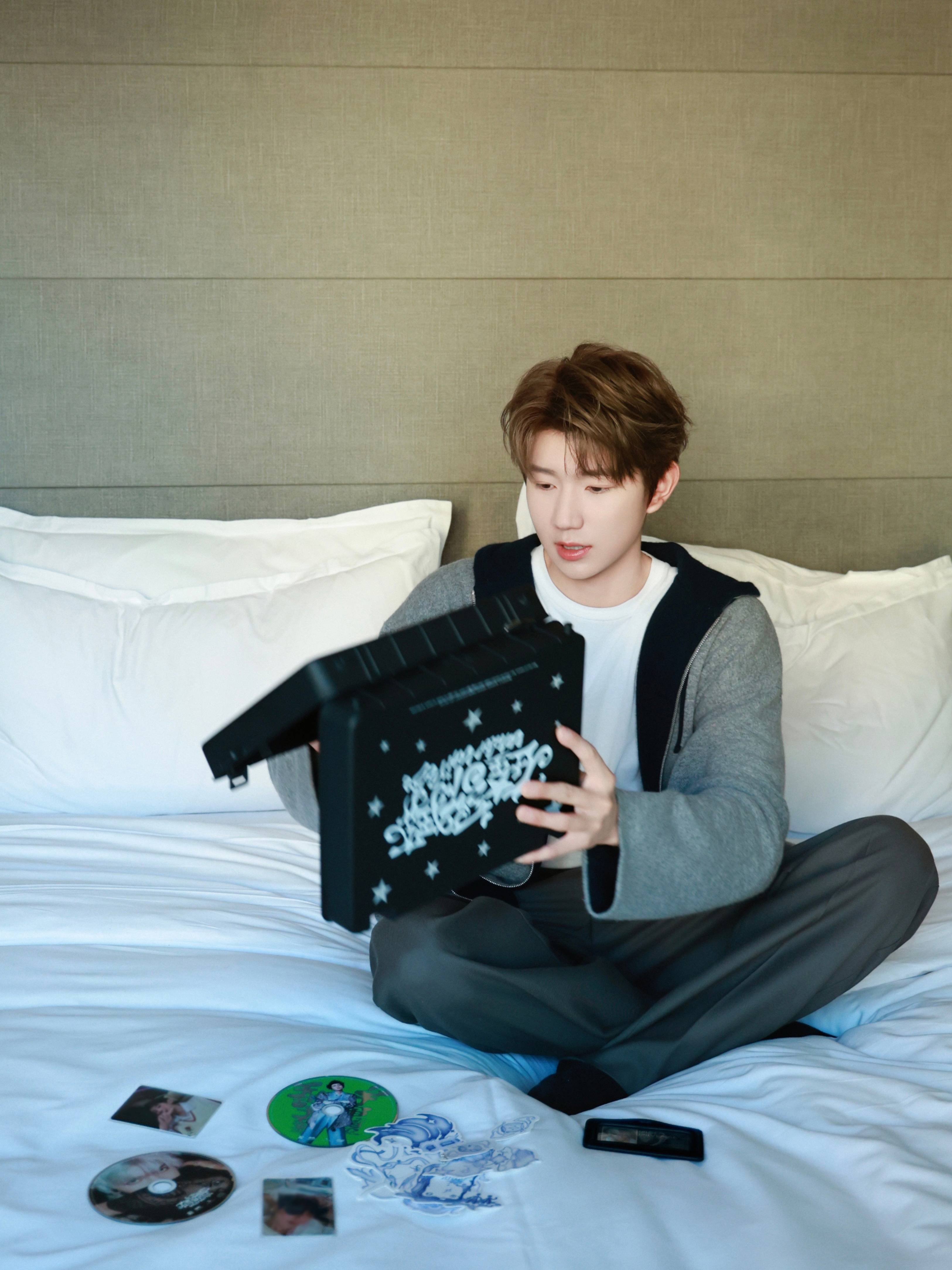 王源自拍小卡王源在床上拆专辑 王源分享拆专辑照片,仪式感拉满了,自拍小卡高糊都挡不住的帅气,一整个期待住!王源老自喜提老己专辑