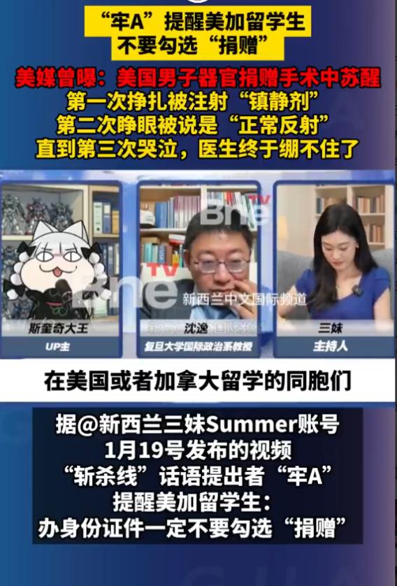 美媒曾曝男子器官捐赠手术中苏醒 “牢A”提醒美加留学生不要勾选“捐赠”,美媒曾曝:美国男子器官捐赠手术中苏醒,第一次挣扎被注射“镇静剂”,第二次睁眼被说是“正常反射”,直到第三次哭泣,医生终于绷不住了。 2021年10月,美国男子托马斯因为用药过量被送进肯塔基州一家医院,医生没多久就宣布他脑死亡,转头就联系了器官捐赠机构准备摘器官。 可就在手术台都准备好了,医生要动手的时候,托马斯突然醒了过来,眼睛还环顾了一下手术室。 旁边的护士赶紧告诉主管,结果得到的命令却是“无论如何都要完成病例”,意思就是这器官必须摘。 托马斯的姐姐当时就在旁边,亲眼看到弟弟睁眼,跟医护人员说却被怼回来,说这只是“常见的反射动作”,根本不算清醒。 这样的事在美国可不是孤例,2022年,38岁的丹妮埃拉晕倒后被送进医院,医生拍着胸脯跟家属说她没救了,劝家属同意捐赠器官。 家属好几次看到丹妮埃拉眼里含泪,却被捐赠协调员说成是无意识反射。 直到手术前,朋友握她的手时感觉到她在动,医生让她眨眼她真的照做了,协调员还在旁边催着注射吗啡,幸好医生还有点医德,坚决停了手术,不然丹妮埃拉就成了手术台上的“器官供应商”。 这些惊悚事件的背后,是美国器官移植行业里的畸形规则和巨大利益。 美国《纽约时报》曾曝光,过去5年里,至少2万名美国患者以“循环死亡后捐献”的名义离世,说白了就是撤掉呼吸机后,等心脏停跳就摘器官,而这个过程被严格控制在器官保鲜的“黄金窗口”里。 之所以这么急,是因为肾脏必须在心脏停跳后30分钟内取出,肝脏不能超过60分钟,超时就没用了。 为了让“产品”合格,19个州的医务人员都承认,曾被要求给撤机患者注射超量吗啡,人为加速死亡。 42岁的霍金斯窒息昏迷后,医生预判她1小时内必然死亡,撤机97分钟后心脏还在跳,器官获取组织的专员却在旁边催“肾脏保鲜期只剩8分钟”,最后医生没等监护仪拉成直线就宣布死亡,结果手术刀划开胸骨时,心脏突然跳了起来,整个手术室都乱了套。 驱动这一切的是真金白银的利益,美国的器官获取组织(OPO)看着是非营利机构,实则藏着暴利的奖金体系。 每成功摘取一个肾脏,参与的医生和协调员能分2000美元,肝脏更是高达5000美元。 2024年的数据显示,排名前10的OPO年利润都突破8000万美元,70%的收入都来自器官移植相关服务。 为了多拿奖金,有些OPO甚至伪造脑电图报告,把深度昏迷的患者直接算成“不可逆脑损伤”,一年时间器官获取量就激增37%。 联邦规定的24小时观察期被压缩到8小时,医生在法庭上都承认“根本没时间做完整的神经功能检查”。 肾脏在暗网能卖到16万美元,完整遗体处理后能卖给军方测试炸弹冲击波,价格5893美元。 亚利桑那州警方曾查获一辆冷藏车,里面12具遗体的器官都被摘了,证件写着是“自愿捐献者”,可家属根本没签过同意书。 更让人无语的是监管的形同虚设,2024年曝光的医生摘取苏醒患者器官案,涉事医院只被罚款12万美元,负责人啥事儿没有。 过去五年里,针对OPO的137起投诉,只有3起被立案调查,联邦卫生部门的审计报告也从不对外公开。 这个行业每年还花2000多万美元游说国会,成功阻止了《器官获取透明法案》的通过,要是这法案过了,所有死亡判定流程和器官去向都得公开,他们就没法暗箱操作了。 反观咱们国家,器官移植规范率达98.7%,每一例捐献都得有红十字会现场见证,所有直系亲属签字,流程录入国家统一信息系统,任何异常都会自动预警,诱导家属放弃治疗、伪造捐献意愿的,最高能判10年有期徒刑,医生收入也和移植数量不挂钩,从根上切断了利益输送。 去美加的留学生大多对当地医疗体系不熟悉,勾选捐赠选项时可能根本不知道背后藏着这么多风险。 他们不像本地人事先了解规则,遇到问题也不知道该怎么维权,很容易成为被“盯上”的目标。 那些器官获取组织连本国患者都敢糊弄,面对语言不通、背景不熟悉的留学生,自然更不会手下留情。 “牢A”的提醒不是小题大做,而是基于一堆真实案例和数据的忠告,毕竟在生命安全面前,多一份谨慎总没错,别等到掉进坑里才后悔当初随手勾了那个框。