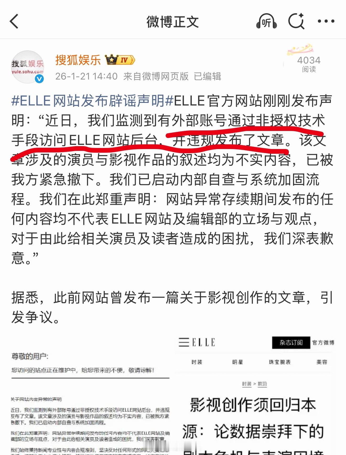 ELLE 影视创作须回归本源黑客攻击后台只为了发布一个剧评?请一定要维权到底,抓