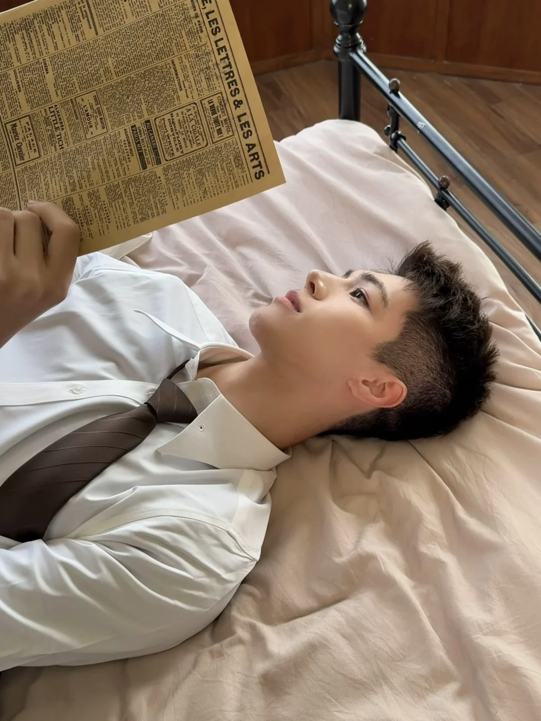 风拂柳,粉樱绽放,我身着浅粉蕾丝旗袍,立于古栏之下。长袖轻笼,盘髻缀珠,耳坠摇曳