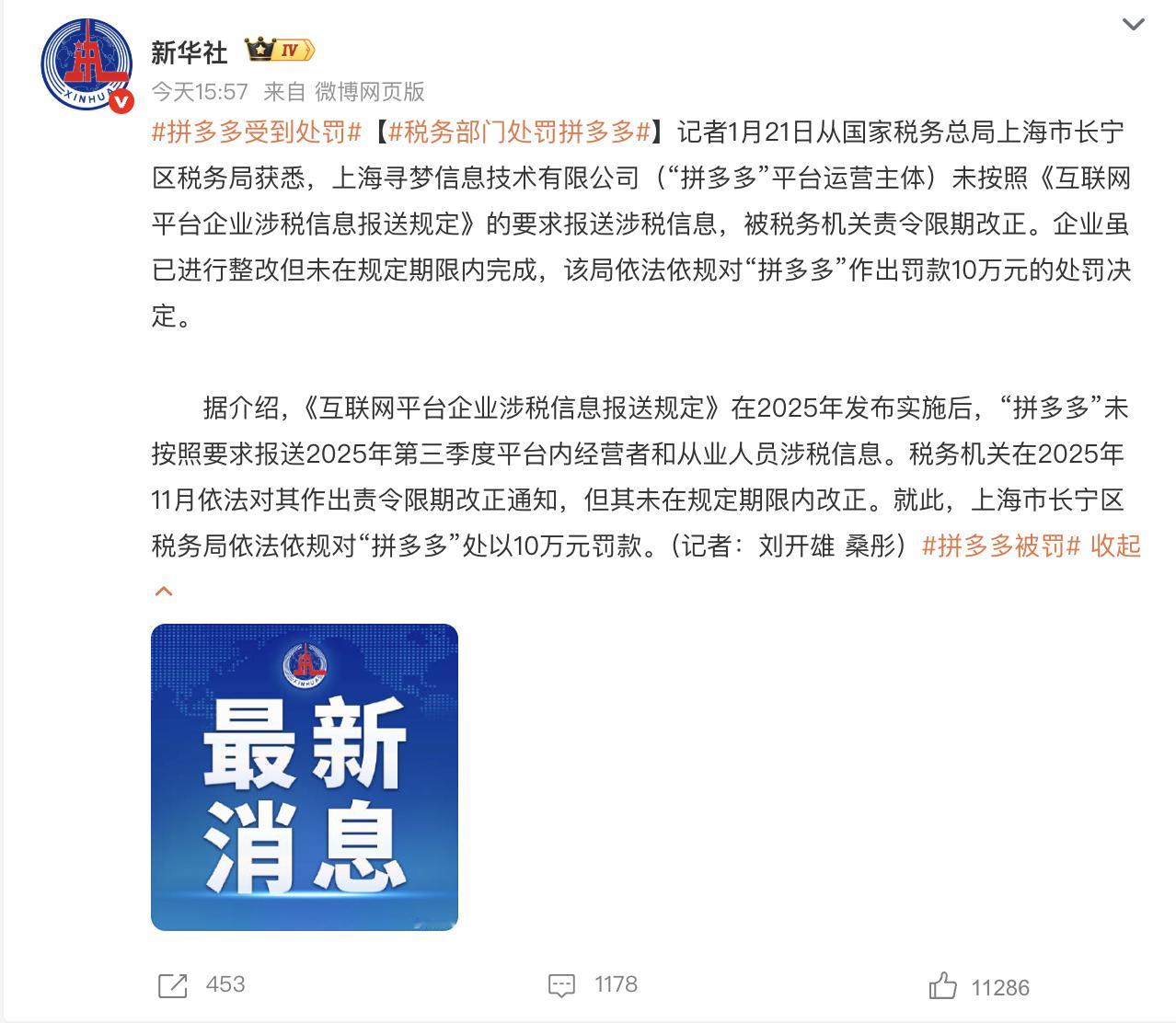 拼多多受到处罚拼多多未按要求报税被罚款了,但是才处罚10万,对这种体量的平台来说,连提醒都算不上。估计这只是前菜,看后面的表现了