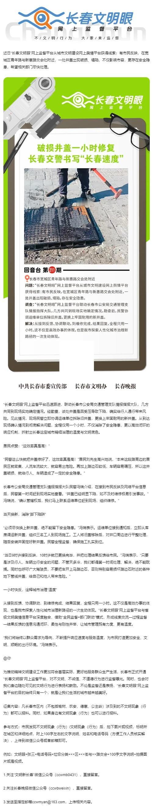 【破损井盖一小时修复,长春交警书写“长春速度” 】长春文明眼 关丽君 初审