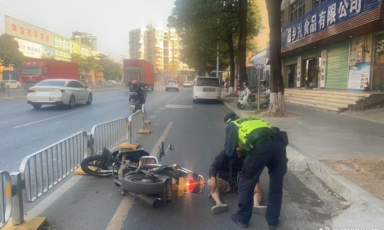 【巡逻路上伸援手 传递公安温暖】近日,惠阳公安巡警特警大队队员在巡逻过程中发现一名男子驾驶摩托车不慎摔倒在地,队员立即上前查看群众伤情。随后,队员通过男子的手机与其家属取得联系,详细说明男子受伤情况与具体位置。待家属赶到现场后,队员协助家属将男子安全送回家,家属对队员的及时帮助表示感谢。@惠州公安
