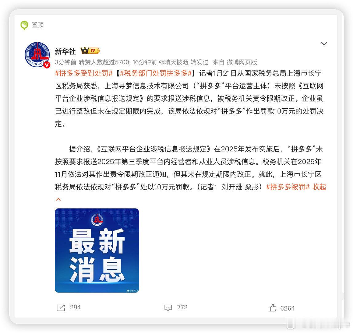拼多多受到处罚为何拼多多被罚款10万元拼多多被罚10万 看着是洒洒水,实则是监管敲警钟千亿大厂的九牛一毛,却藏着明确信号:合规无小事,大厂也不能任性越界税务细节都盯紧了,只求后续也能管管砍一刀的套路行稳致远,终究得靠真合规~