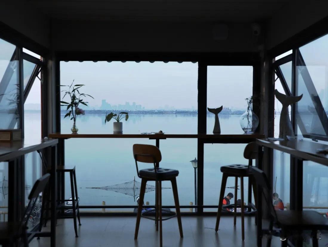 沿湖的咖啡小店,布置的甚是雅致,分为二层,一楼是制作咖啡奶茶的主调制区,有可以翘着二郎腿的高脚吧台;二楼别有洞天,穿过落地窗,可以眺望平静的湖面风光。小店还有一个大庭院,家人,朋友都坐在一起品着咖啡,愉快的聊天,还有小朋友在一旁制造着泡泡,小狗三三两两在里面溜来溜去,一片愉悦轻松的景象…… 我自然也不会错过,点了一杯咖啡,坐在窗前看着美景,吹着微风,沉浸在这一刻~