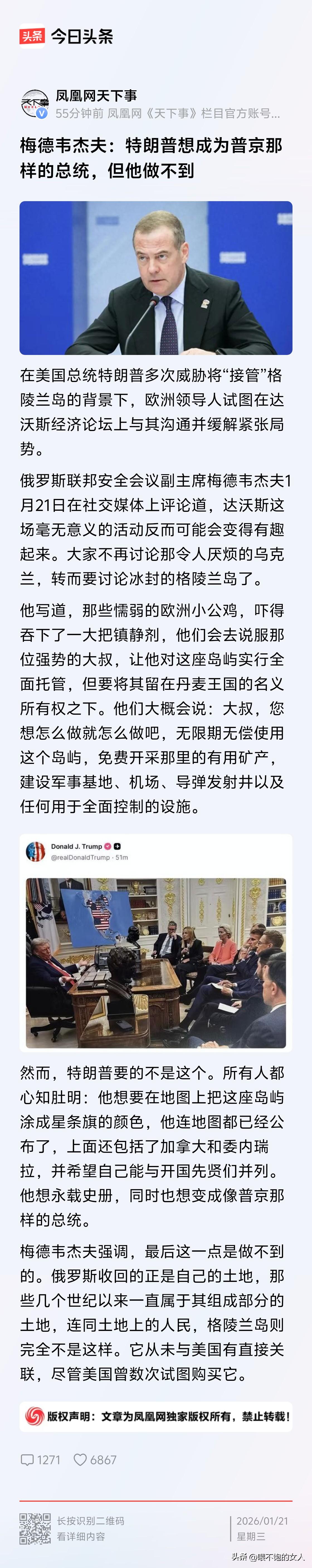 一点感谢:我想知道梅德维加夫是什么学历和专业?是研究心理学的吗?怎么把特朗普跟欧洲的小心思琢磨的那么透?看上去大道理没有吧,小道理倒讲的头头是道。[捂脸]