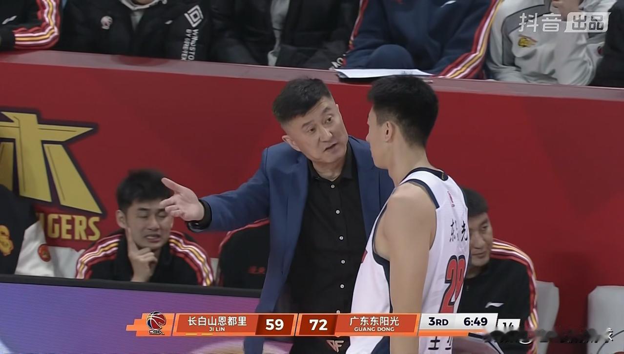 广东东阳光主帅杜峰真是苦口婆心!在今天广东东阳光客场挑战长白山恩都里的比赛中,当时比赛进行到了第三节的6分49秒,广东东阳光以72:59领先对手,当时王少杰在防守端出现了错误,因此被杜峰教练替换下场。当王少杰走到球队的替补席时,只见杜峰教练拉着王少杰的胳膊苦口婆心的进行指导,俨然一位严师一般。 所谓严师出高徒,我相信王少杰在杜峰教练的精心培养下一定能够取得更大的成功。