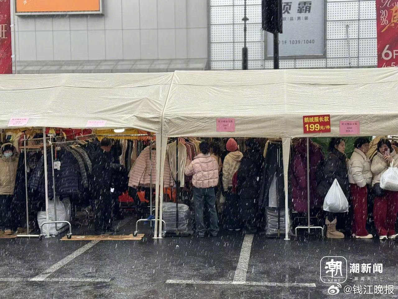 #杭州四季青年底清仓毛衣100元3件#【“毛衣一百三件!”四季青年底清仓,有人冒雪从江西赶来扫货】#寒潮挡不住杭州四季青年底清货热潮# 春节一天天临近,有人开始抢第一波春运火车票,有人瞅着年末好价赶来杭州四季青淘货。1月20日上午,杭州下雪,原本以为这样的天气,四季青上周开出的外摆市集会受到影响,记者到了现场一看,大家淘货的热情不减。“全场零售”“现场试穿”“清仓甩卖”的招牌挂在外摆区统一搭建的白色大棚上,前来淘货的人有的拖着行李箱,有人提着大大的塑料袋,往日在档口和批发商打交道的商户们,无不在雪中热情招呼过往的顾客。走进商场,和室外集市相比,少了寒风更显热闹。“毛衣打底,毛衣一百三件,打底一百四件”“羽绒外套可以试穿”“特价、全场特价,来看一下”的吆喝声此起彼伏。不少档口还一边做着零售的生意,一边工作人员在门口忙着拆包、分拣、打包,将批发商们预订的货物整理好发快递。街区里、商场中,快递员、拉包工、顾客、商户都忙忙碌碌,沉浸在这场年底的服装盛宴中。即便寒潮来临,似乎也挡不住一年一度的四季青年底清货热潮。本地和外地顾客齐齐出动纷纷赶来四季青淘好货“这件羽绒服不错我来试试看。”来自江苏南通的沈女士看中了外摆集市上一件白色长款羽绒服,即便下着雪的室外也不怕,外套一脱套上羽绒服,在镜子前转一圈就爽快地扫码付钱。工作人员立马贴心地递上扎实的购物袋,将沈女士自己的衣服装好。沈女士一行四人,昨天从南通开车来到杭州,已经预约好了下午去逛灵隐寺,趁着上午空档前来四季青扫货。才在外摆市集上逛了几个摊位,几个人手上已经大包小包提了不少“战利品”。“上一次来杭州四季青市场,已经是十年前的事情了,其实这些衣服我们家那边也有,这不都来杭州了,听说年底会有零售就过来看看。”沈女士说价格嘛还是比较实惠的,“这件长款的390元。”孙女士和小姐妹三人是特意从江西赶来杭州“淘宝”的。“我们是第一次来,没想到杭州下雪了。”在外摆市集上逛了一会,除了孙女士,另外两人手里已经各提了一个不大的黑色的塑料袋。昨天来到现场的,有很多经验丰富的顾客,“现在价格是便宜,不过到了年二十七、二十八会更便宜的。”一路上,可以听到不少人分享着攻略,商量买什么等。“我们反正也没什么事情,想来就来了。”淘货的不仅有年轻人,也有上了年纪的阿姨。董阿姨和老姐妹也是三人,从萧山赶来看看,“我们坐地铁7号线直达,很方便的。”董阿姨她们目的地明确直冲旺田女装4楼,不承想却闹了个小乌龙。记者跟着一大圈走下来,发现里面的款式偏年轻,“好像适合我们这个年龄段的店不多。”“我们是不是走错地方了?”“再去别的地方看看。”董阿姨几人说已经好几年没来四季青了,是临时决定来淘货的,“随便逛逛,再找找看,有合适的就买。”据悉,今年参与联动的有23家市场,不仅有旺田女装、昆龙童装、新九天等耳熟能详的老市场,还有中纺中心服装城、杭泵精品男装市场、四季青面料市场等以往较少对散客开放的专业市场,涵盖女装、男装、童装、配饰、面料等全品类,其中有7家市场开设外摆,可以实现“一站式淘遍四季青”。不过,随着上午的雪一度越下越大,记者看到昆龙童装门口市集有几家围上了塑料防雨布,有人询问,商户才掀开展示。春装开始陆续上新中年底清仓淘好货正当时“要说热闹还得是上个周末,店里人挤人。”代女士在意法服饰城开了一家档口,趁着昨天人稍微少一些抓紧时间理货,“零售的是冬装,春装现在只批发不零售。”记者看到铺子里有部分衣服用布挡着,代女士说里面是上新的春装。有熟悉的客户进门,代女士掀开布料介绍。陌生的顾客进门,她就带着客人在排列好的冬装展架前招呼。隔壁商铺的沈先生家主打卖打底,一百元四件,“平时我们只做批发,不零售的。”沈先生告诉记者今年总体来说生意还不错,“我们就剩下这些货了,卖完就先回家。”店铺门口,张贴着一张招聘启事:急招销售3名,配货小弟2名。“不是为现在招的,是为年后做准备。”沈先生说等这批衣服卖完,要重新装修下,“过完年春装上新肯定会比较忙,所以要提前招人。”记者逛了一圈发现,不管是价位较高的羊毛大衣还是价格实惠主打性价比的羽绒服,又或者是各种版型、材质的裤子,冬款中仔细淘可以找到不少价廉物美的好东西。至于价格方面,确实比平时要实惠。张女士已经连续两年参与了四季青的外摆集市,早上8点就守着摊,“一开始天气还行,人挺多的,9点多开始下雪,人就少一些了。”张女士指着衣服说,“平时卖几百块的羽绒服,现在不到200块,比冬装刚上新时拿货价还实惠。”记者了解到,此次清仓大促将持续至2月初,即农历新年前夕。根据往年经验,大概到1月20日-24日各个档口会陆续歇业,此外临近年底清仓结束价格可能会更优,但到时候会出现断码、缺款等情况,如果想淘到心仪好货,建议可以根据自己时间安排早一些去。(潮新闻记者 黄伟芬)