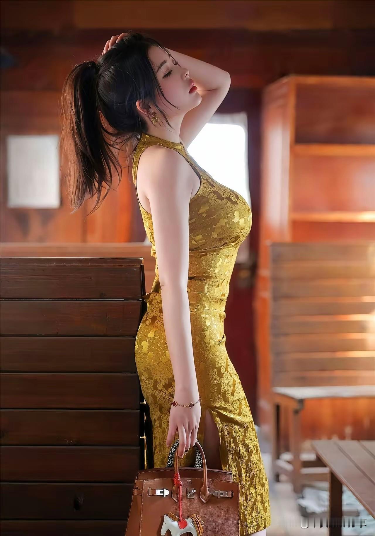 旗袍一般人穿不了连我都羡慕了 一辈子我要这样的身材旗袍江南风旗袍照中
