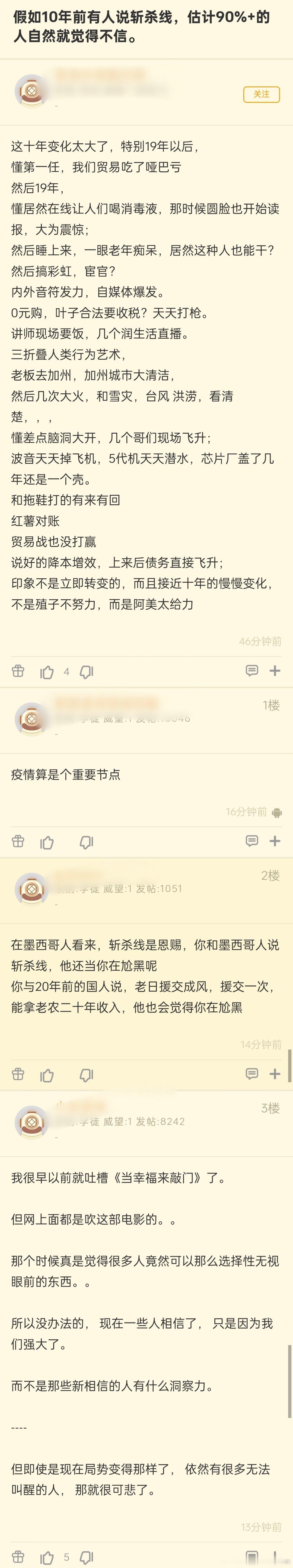 在美国的华人怎么看斩杀线假如10年前有人说斩杀线,估计90%的人都不相信。🤔🤔