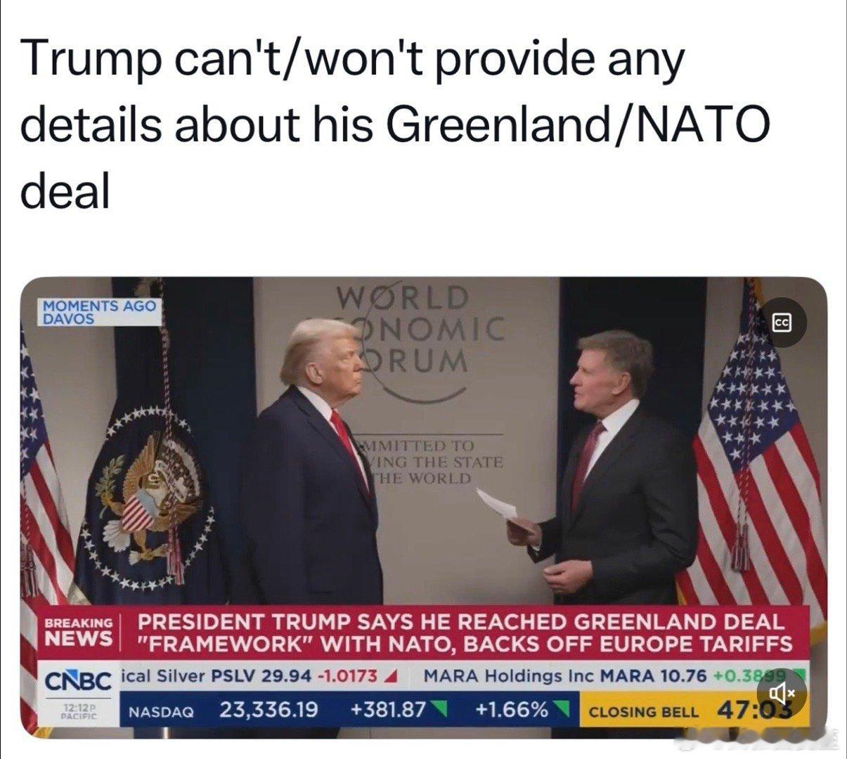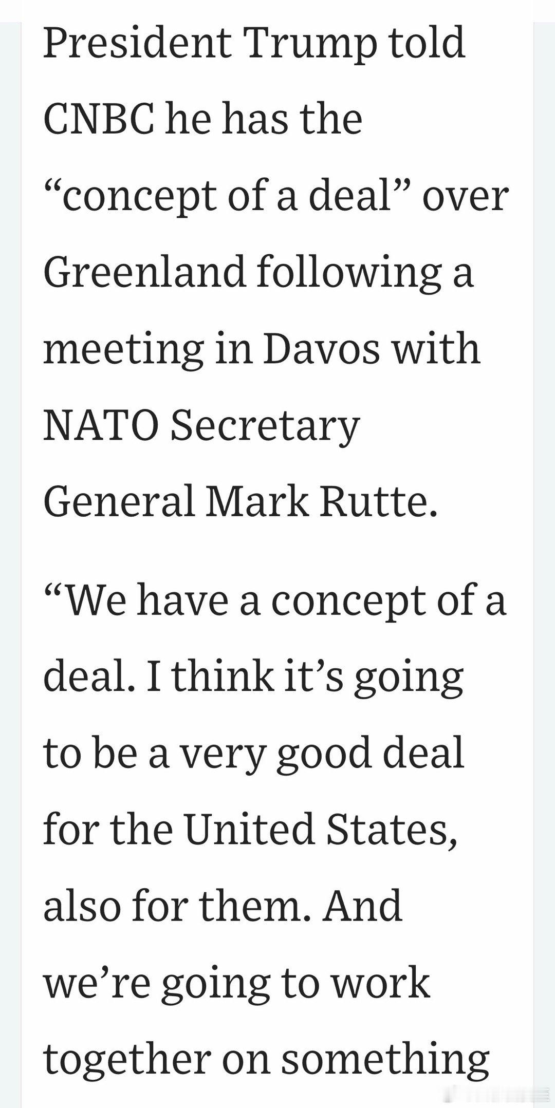 美国总统在达沃斯宣布:与北约秘书长达成“非常棒”的“概念性框架协议”…对双方都有利…向欧洲加征关税的威胁取消没有具体细节,副总统、国务卿、和平特使负责去谈 (图一里的建筑,是美国🇺🇸驻格陵兰🇬🇱领事馆)