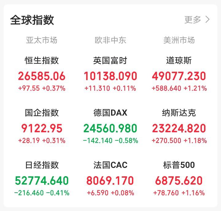 昨天晚上还想着大A冲高回落,今天大A会反人性下跌! 一觉醒来,眼前一亮。富时中国三倍做多ETF上涨,纳斯达克中国金龙指数收涨,富时A50期指连续也收涨,氛围融洽。大A今天再收阳线,看来有希望! 隔夜,老美三大指数全收涨,亚太市场,欧非中东、美洲市场涨多跌少,氛围良好。 隔夜,道指收涨1.21%,纳指收涨1.18%,标普500收涨1.16%,富时中国三倍做多ETF收涨3.41%,富时中国三倍做空ETF收跌3.42%,富时A50期指连续指数小涨0.29%,纳斯达克中国金龙指数收涨2.21%,今天这形式很好啊! 隔夜消息面: 消息一:近期,央行召开2026年支付结算工作会议。会议指出,要加快建设人民币跨境支付体系,推进跨境支付互联互通,推动跨境支付体系多元化、多层次发展。 消息二,当地时间21日,欧洲议会国际贸易委员会主席朗格宣布,针对欧盟与美国贸易协定的审议将无限期冻结。随后在在达沃斯举办的世界经济论坛年会上,美国总统特朗普表示,美国无意动用过激武力来获取格陵兰岛。 消息三:黄金盘中再创新高,触及4880美元。 隔夜消息面尚可,黄金再创新高,今日黄金板块继续嗨,接着奏乐接着舞;消息一利好跨境支付板块,预计今日跨境支付板块会有所表现。 从近期盘面可以看出,指数盘中跳水就是急跌,拉升就会回落,资金兑现情绪明显,接近年底,各路资金,无心恋战,大家都想着落袋为安。 预计指数节前以震荡维稳为主,大家可以小仓位,做做高抛低吸,玩玩短线,静待指数选择方向,建议不要重仓博弈,以防调整加速。 结合消息面及外围走势,预计今日A股延续震荡走势,再收一根收小阳线概率大。 人最重要的是,要保持积极良好的心态,积极乐观的过好每一天。心有光,脚下有路,你远比自己想象的更坚韧,追光的人,终会光芒万丈。 理财有风险,投资需谨慎。大家一定要保持谨慎,做好风险控制。 点赞,关注是对我最大的支持!
