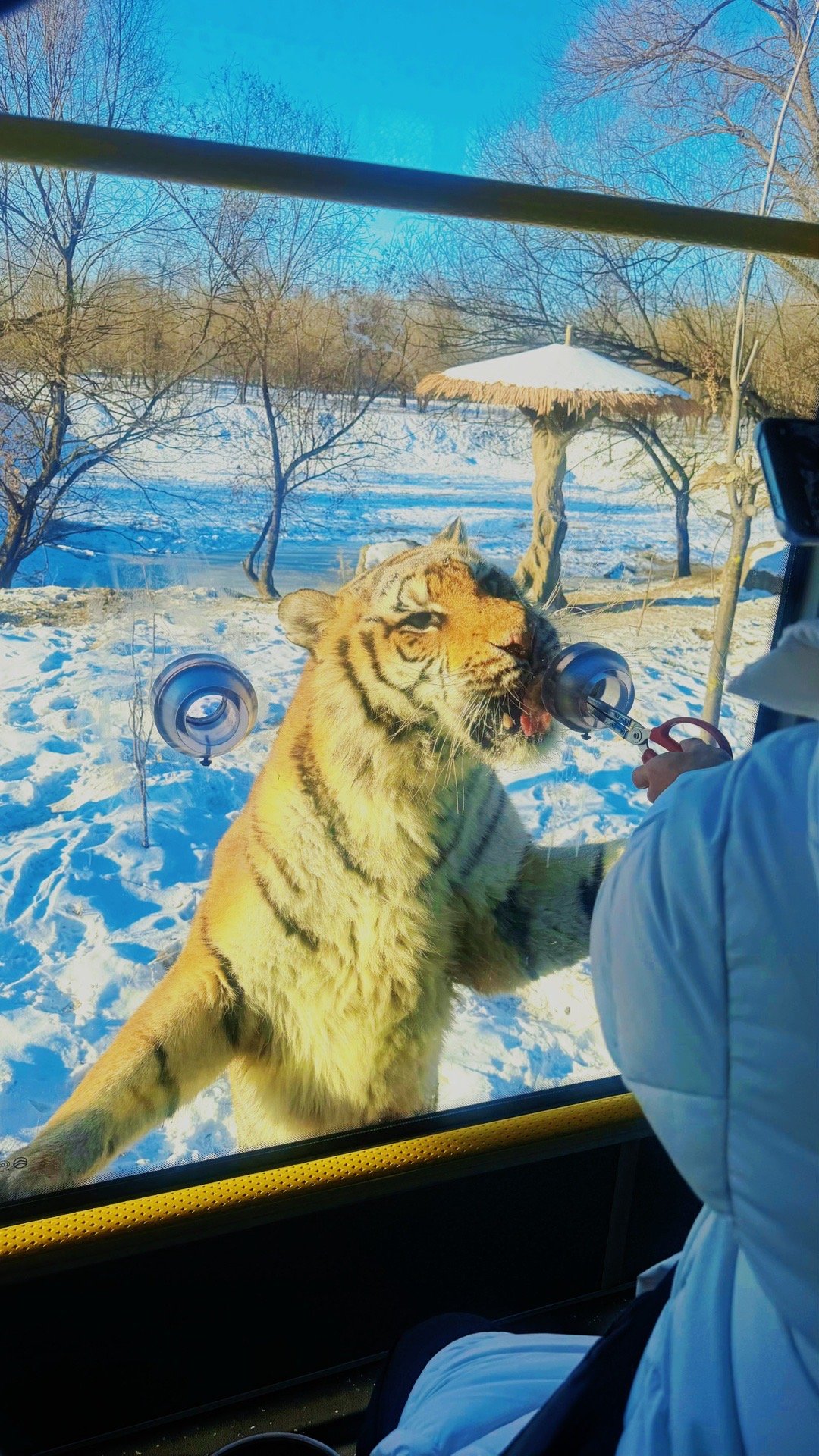 万千气象看龙江 东北虎林园,🐯哈尔滨松花江北岸的虎界顶流聚集地来啦!《说文解字》道“虎,山兽之君”,看山君化身珍稀大猫沉浸干饭黑龙江东北虎林园 哈尔滨·东北虎林园