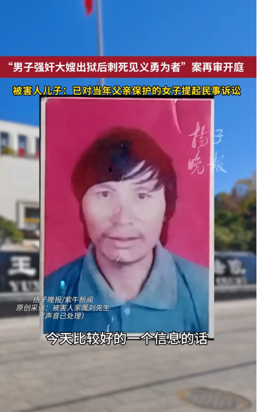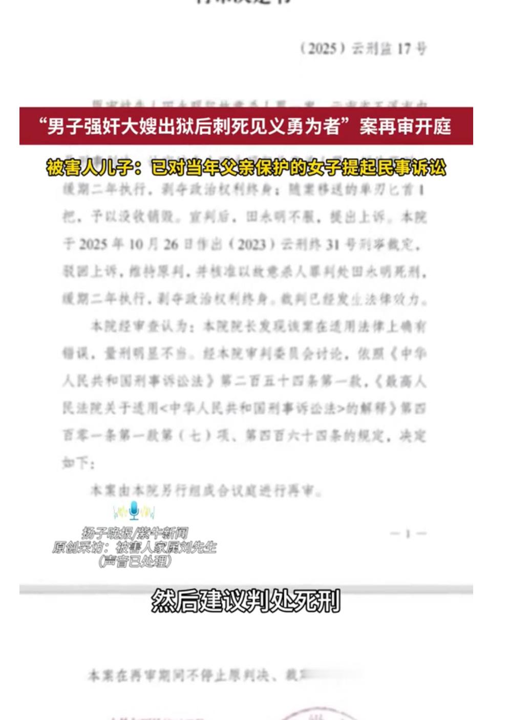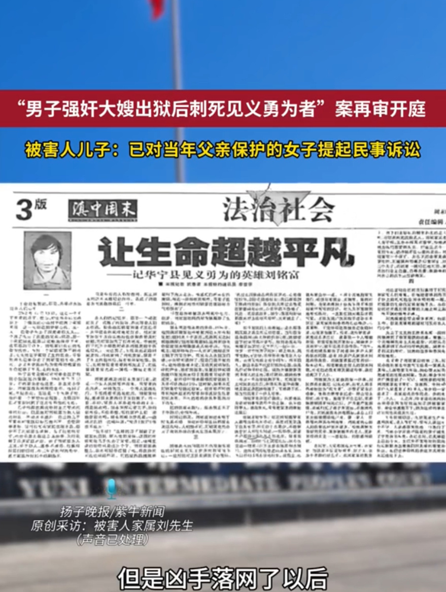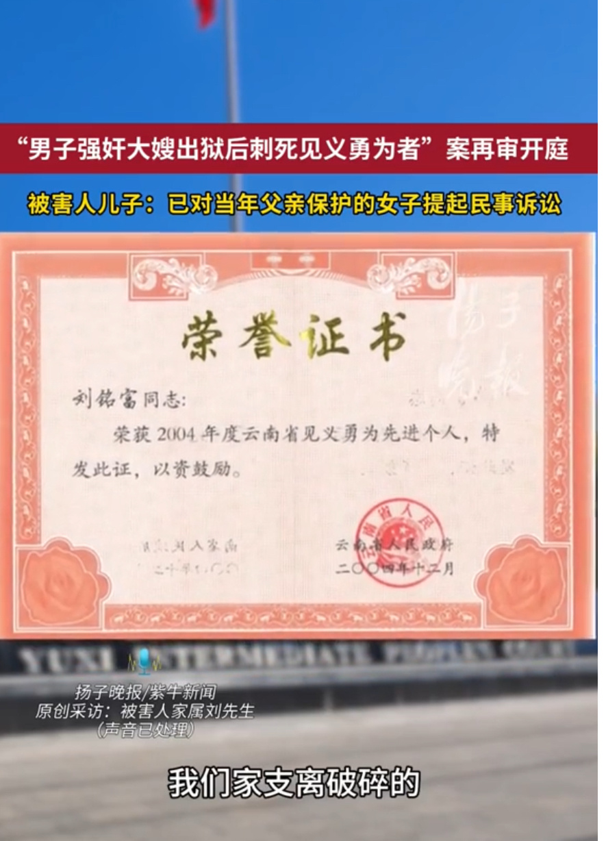 男子见义勇为被捅死后3个儿子辍学24年前,云南村民刘铭富为救同村女子,被刑满释放的报复者连刺数刀身亡,留下三个未成年儿子辍学养家。2026年1月21日再审开庭,检方建议改判死刑立即执行。微评时论