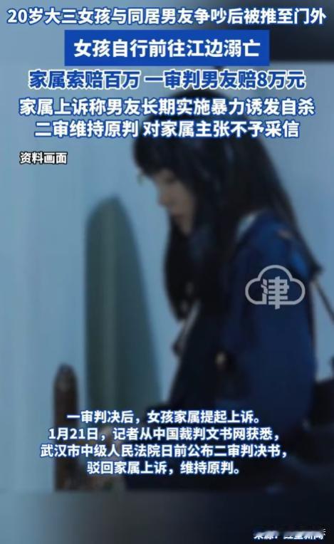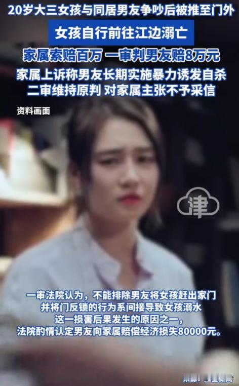 湖北武汉,20岁女大学生小苏,在酒吧工作,和男友王某同居。当晚小苏在酒吧玩了一整夜,次日早上8点多回家,和男友激烈争吵还拉扯,穿衣镜被弄倒,碎片划伤了她。王某把小苏推出门外反锁,小苏在朋友帮助下处理伤口后去了江边。王某没及时找,两小时后发现定位没动去江边,得知小苏已溺亡。小苏父母将王某告上法庭索赔104万。 (来源:津云、红星新闻、深圳新闻网) 女子小苏是20岁的女大学生,和男友王某都在酒吧工作,他们一直同居生活。 2024年4月1日晚上,小苏在酒吧玩得那叫一个嗨,一整晚都没回家。 第二天早上8点多,她醉醺醺地回来了。 王某一看她这样,心里就来气,两人瞬间就吵起来了,最后还拉扯了起来,这一拉扯,家里的穿衣镜就倒了,碎片划伤了小苏。 王某当时正在气头上,也没管小苏伤得怎么样,直接就把她推出门外,还把门反锁了。 小苏在门外又疼又委屈,还好这时朋友杨某路过,帮她简单处理了下伤,可小苏心里那股气还是没消,就往江边走去了。 王某把小苏赶出去后,也没当回事,觉得她就是闹脾气,过会自己就回来了。 两小时过去了,王某闲着没事,就看了看手机定位,这一看可把他吓一跳,定位一直没动,他这才有点慌了,赶紧拉着杨某去江边找。 等他们到了江边,小苏已经溺亡了。 小苏的父母指出,就是王某害死了自己女儿。 小苏的父母说:王某把受伤的女儿赶出去,还不及时的去找,这就是不负责任,必须得赔钱。他们把王某告上了法庭,索赔104万。 王某说:小苏是成年人,她自己跑去江边投江,这能怪我吗?而且她父母也有保护她的义务。 那么,到底谁说得对呢? 小苏的父母觉得王某赶人行为就是导致女儿死亡的直接原因,王某得负全责。 可王某觉得小苏是自主行为,自己没责任。 小苏作为成年人,她的行为该如何界定呢?从法律的角度,该怎么解决这些问题呢? 王某把受伤的小苏推出门外反锁,该行为和小苏的离世有因果关系吗? 根据《民法典》第一千一百六十五条规定,行为人因过错侵害他人民事权益造成损害的,应当承担侵权责任。 王某在小苏受伤的情况下,将她推出门外反锁,这一行为虽然不是直接导致小苏溺亡的原因,但却是小苏离家出走的起因,间接促成了后续悲剧的发生,所以存在一定的过错。 王某说小苏是自主投江,自己没责任,这种说法成立吗? 小苏作为成年人,确实有自主行为能力,但王某在她受伤被赶出去后,有及时救助的义务。 根据《民法典》第一千零五条规定,自然人的生命权、身体权、健康权受到侵害或者处于其他危难情形的,负有法定救助义务的组织或者个人应当及时施救。 王某没及时寻找小苏,没尽到救助义务,不能以小苏自主行为为由完全免责。 小苏的父母,索赔104万合理吗? 赔偿金额得根据王某的过错程度、小苏自身的责任等多方面因素综合考虑。 有人说:王某太过分了,把受伤的女友赶出去,还不管不顾,必须得赔钱。 也有人认为:小苏自己跑江边,王某咋能预料到呢,不能全怪他。 其实,感情的事,本来就复杂。两个人在一起,难免会有争吵,可争吵也得有个度。 小苏和王某这么一闹,最终还出了人命,真是太可惜了,年轻人处理感情问题,还是得理智点,别冲动。 最终,二审驳回了上诉,维持一审判决,王某赔偿小苏家属8万元。 您对这件事有什么看法呢?