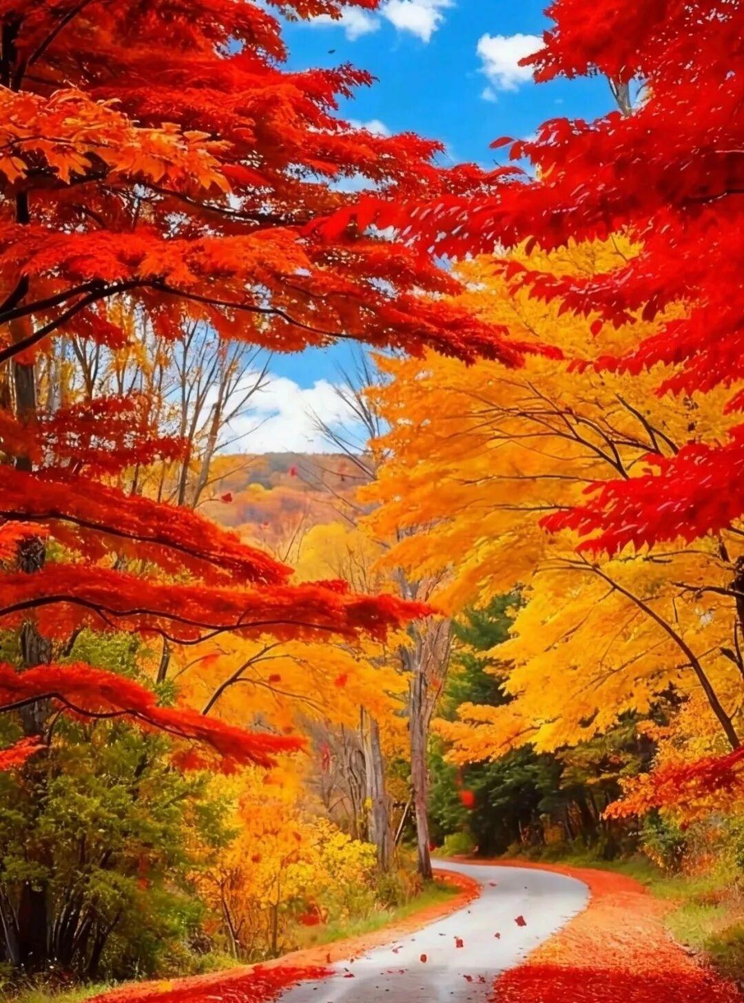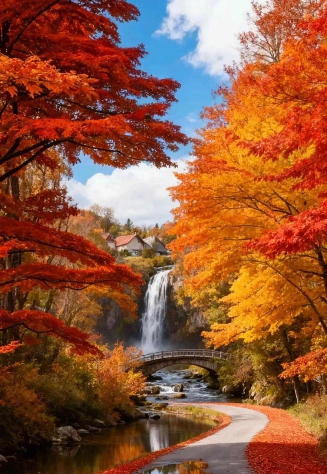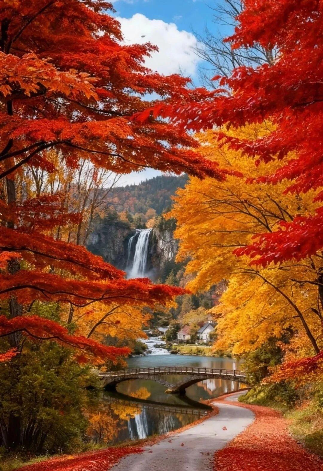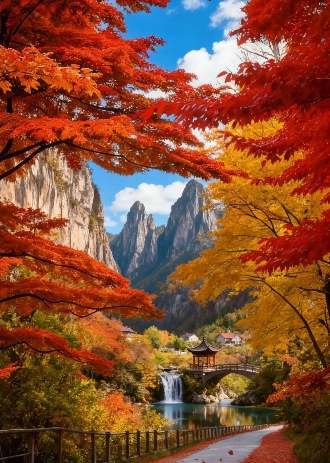 AI与实景,丹枫秋意