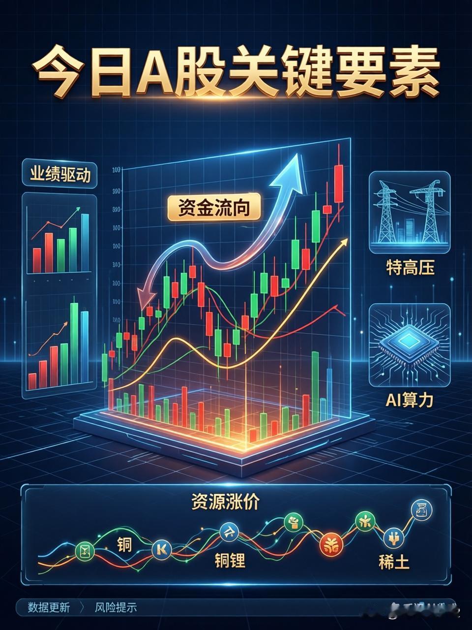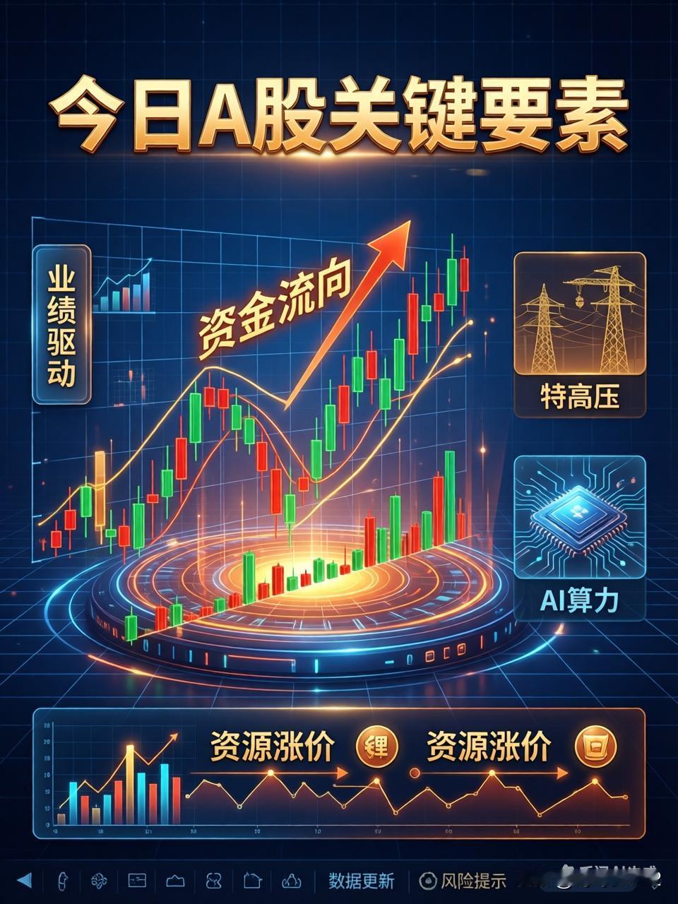 今天是2026年1月22日(周四),A股刚刚结束了一天“过山车”式的震荡。结合今天的盘面表现和最新的财经资讯,我为你整理了明天(1月23日)股市需要重点关注的信号和逻辑。 📉 核心判断:高位震荡,等待“业绩”发令枪 目前的市场正处于一个分水岭。前期普涨之后,现在进入了“业绩验证期”。明天市场大概率会延续高位震荡、结构分化的态势,关键在于观察资金能否稳住创业板,以及年报预披露带来的机会。 📊 1. 指数风向标:关注创业板能否“收复失地” 今天大盘走出了冲高回落的行情,虽然收盘三大指数(沪指、深成指、创业板指)均为上涨,但过程惊心动魄。 关键点位:明天重点关注创业板指能否站稳3300点。今天的盘面显示,权重股在护盘(沪强),但题材股在退潮(深弱)。如果创业板不能放量大涨,修复今天的“上影线”,市场的调整压力可能会持续。 成交量:今天成交额突破2万亿,说明多空分歧巨大。明天需要观察成交量是否能维持在高位,或者出现缩量企稳。 💰 2. 资金去向:从“炒作”转向“业绩” 现在的资金非常“现实”,不再盲目追高,而是开始寻找有业绩支撑的“避风港”。 流出板块:今天贵金属、保险、半导体和电池板块出现了明显的资金流出。特别是前期涨幅过大的题材股,面临获利盘回吐的压力。 潜在方向:资金正在高低切换。明天可以重点关注中证2000指数相关的中小盘股,以及具备防御属性的材料、消费和医药板块。 🚀 3. 明日热点前瞻:三大“硬逻辑”方向 根据最新的消息面和业绩预告,以下三个方向值得你明天重点留意: AI与算力(业绩驱动): 逻辑:AI产业链正在从“讲故事”变成“看业绩”。随着Intel、AMD上调服务器价格,以及存储芯片涨价,存储芯片、算力硬件等细分领域业绩确定性很高。 关注:有业绩预告支撑的AI应用、光模块等板块。 电网与特高压(政策驱动): 逻辑:“十五五”期间电网建设投资将超5万亿,重点投向特高压。这是一个确定性极高的长期逻辑。 关注:特高压设备、电网数智化转型相关企业(如平高电气、许继电气等方向)。 周期涨价(涨价驱动): 逻辑:硫黄价格暴涨、金属价格上涨。高盛还上调了金价目标,这对资源类板块是直接刺激。 关注:化工(特别是硫化工)、有色金属中的铜铝等板块。 ⚠️ 4. 风险提示:避开“雷区” 年报地雷:现在是年报预告密集披露期,已经有超过400家公司披露,其中“预忧”的数量不少。明天操作时,一定要避开那些业绩大幅下滑或亏损的个股,特别是前期被炒作过的题材股。 高位股退潮:连板股(连续涨停的股票)今天普遍回调,说明市场情绪在降温。不要轻易去接高位股的“飞刀”。 💡 给你的操作建议 面对明天的行情,建议你“多看少动,不盲目追高”。 1. 对于短线操作:不要在早盘急跌时恐慌割肉,也不要冲高时盲目追涨。等待盘中企稳,重点关注有业绩预告支撑的科技和周期股。 2. 对于中长线布局:如果市场出现回调,反而是布局优质蓝筹和宽基ETF(如沪深300、科创50)的好机会,特别是那些被错杀的绩优股。 一句话总结:明天市场大概率还是“结构性行情”,别被指数的波动迷惑,盯着“业绩”和“估值”走,才是当下最稳妥的策略。