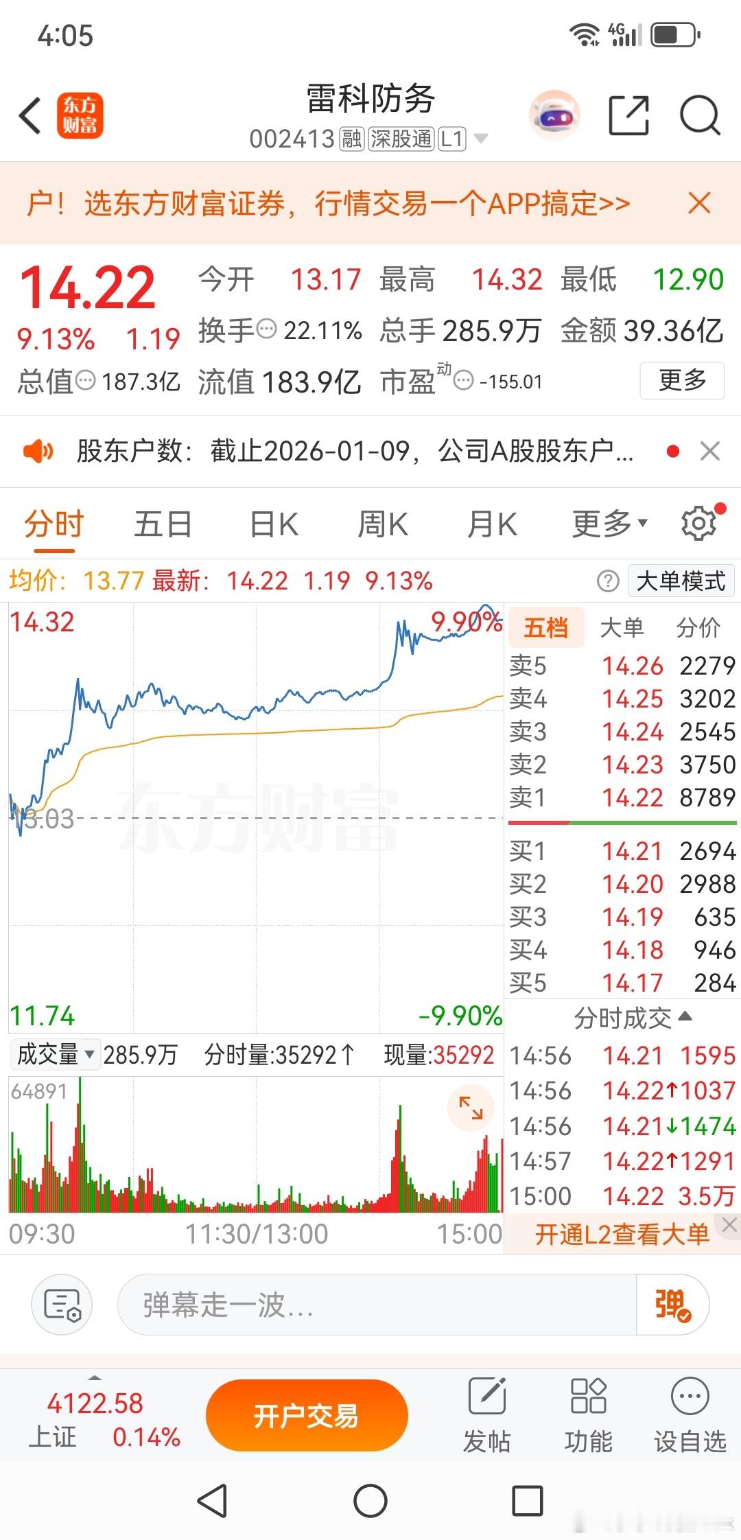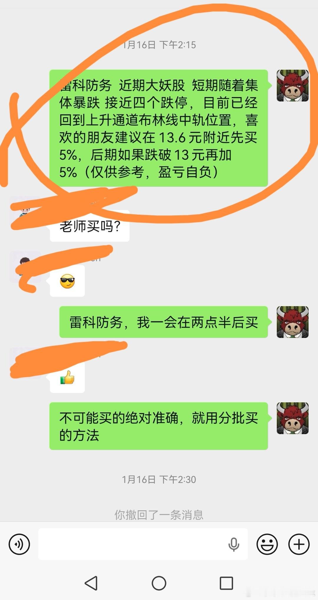 雷科防务,我依然选择继续持股雷科防务,我上周五多次强调本周就是高位崩塌妖股很好的二次买入的机会,我也是这么做的。雷科防务,我在上周五尾盘就建议可以在13.6分批买入了,由于拟无法精准的把握到低点,所以我建议如果跌破13元,还可以继续加仓.经过两天的震荡,终于迎来了妖股反弹的爆发,虽然尾盘接近了涨停,也有接近十个点的利润,但是我认为,这次下跌这么狠,在这里可以适当的贪婪一下。当然,是否会连续上涨,这个完全是不可预测的,心理上我是一颗红心两种准备,也做好了震荡回调的准备,现阶段其他地方也没有太好的机会,还不如在这里搏一把更高的位置。给雷科防务设定一个心理价位,两周之内能看到15元,我非常满意。欢迎加入我们的免费交流群财经股票