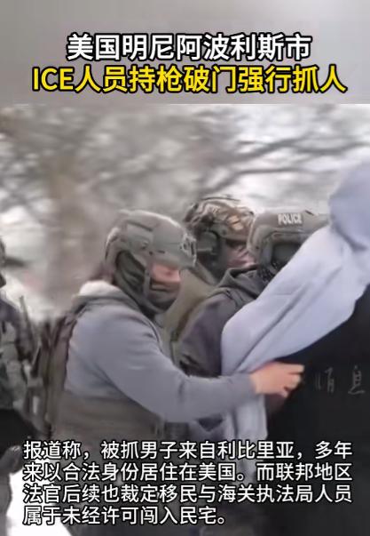 太嚣张了,ICE在大街上作威作福就算了,现在竟然还硬闯民宅抓人,而监控画面拍得清清楚楚,几名执法人员举着枪,“砰”地一下就撞开了一户人家的大门,冲进去二话不说就把屋里的男人按倒在地,戴上手铐直接押走。 2026 年,美国明尼阿波利斯市,一段流传出来的监控画面,让这座城市的居民心头揪紧。 画面里的每一个细节,都让看过的人忍不住倒吸一口凉气。监控镜头对着一户民居的大门,数名身着执法装备的ICE人员围在门前,手里的枪直挺挺举着。 下一秒一名执法人员一脚将门踹开,没有任何喊话,没有任何警告,几个人影瞬间冲了进去,屋内随即传来桌椅碰撞的声响,不过十几秒的时间,他们就将屋里的一名男子死死按在地上。 冰冷的手铐迅速铐住了他的手腕,男子全程没有任何反抗的机会,就被架着胳膊拖出了家门,塞进了停在路边的执法车辆,整个过程快得让人反应不过来,而这一切,都被监控完整记录,没有丝毫遮掩。 明尼阿波利斯的街头,最近几个星期里总能看到ICE的执法车辆穿梭,全副武装的执法人员戴着面具在街区里巡逻,挨家挨户地敲门盘问,这样的场景让当地居民连出门都觉得心里发慌,而更让人揪心的是,执法过程中的冲突更是接连不断。 1月7日,当地一名37岁的美国公民蕾恩・妮科尔・古德,在 ICE 的一次执法行动中被当场射杀,这名三个孩子的母亲,只是因为拒绝下车接受盘查,就成了冰冷枪口下的受害者。 而这起悲剧并没有让 ICE 的执法收敛半分,仅仅一周之后,当地又发生了ICE 执法人员开枪击中一名男子的事件,这名男子因腿部中弹被紧急送医,而官方给出的说法,只是该男子与 ICE 人员发生肢体冲突,且被认定为来自委内瑞拉的非法移民。 接连的枪击事件,让明尼阿波利斯的抗议浪潮一波高过一波,抗议者走上街头阻挡 ICE 的执法车辆,向其投掷石块表达不满。 而执法人员则用催泪瓦斯、胡椒喷雾驱散人群,甚至将抗议的女子从车上直接拽下逮捕,双方的冲突不断升级,这座城市的街头,俨然成了执法者与民众对立的现场,而即便面对这样的局面,ICE 的执法行动依旧没有停止,反而愈发强硬。 很多人都在疑惑,为何ICE会在明尼阿波利斯市如此肆无忌惮,甚至连基本的执法边界都全然不顾,其实从近期曝光的一系列政策和实际情况中,就能找到答案。 一份在1月21日曝光的 ICE内部备忘录,打破了此前移民执法的规则,这份文件明确规定,执法人员在执行最终驱逐令时,无需持有联邦法官签署的司法搜查令。 仅仅凭借移民系统中的1205行政驱逐令,就可以直接进入被驱逐人员的住所实施抓捕,而在这之前,国土安全部的常规做法,是必须拿到司法搜查令或者获得当事人同意后,才能进入民宅。 如今这一规则的打破,让ICE硬闯民宅的行为有了所谓的 “行政依据”,这也是他们敢毫无顾忌踹开居民家门的重要原因。 这份备忘录里还特意强调,1205 表格作为行政驱逐令,代表着案件已经完成所有法律程序进入强制遣返阶段,其效力在移民执法中是长期被认可的,国土安全部的相关官员更是直接为这一做法站台,这就给 ICE 的激进执法吃了一颗定心丸。 而政策上的宽松,只是 ICE 有恃无恐的一个方面,巨额的资金投入,让这支执法队伍的硬件和人力都得到了前所未有的扩充,也让他们有了足够的底气在各地展开高强度执法。 2025 年 7 月,特朗普签署的《大而美法案》,为美国的移民执法投入了史无前例的 1700 亿美元专项资金,这其中,光是 ICE 就拿到了 290 亿的直接拨款。 巨额的资金迅速转化为实际的执法能力,ICE 不仅配备了价值 50 万美元的贝尔卡特装甲车,甚至还能调用价值 800 万美元的 UH-60 “黑鹰” 直升机配合地面执法。 为了快速扩充人手,ICE 还将招聘门槛降到了历史最低,不需要警校的毕业证书,不需要无犯罪记录证明,只要拥有持枪证、会开车,再接受短短 8 周的培训,就能正式上岗成为执法人员。 不少都通过这样的简易招聘程序,成为了 ICE 的执法人员,这批带着强烈意识形态偏见的执法者,将手中的执法权当成了执行个人意志的工具,执法的激进程度可想而知。 而压在 ICE 执法人员身上的超高指标,更是让他们的执法行为不断变形,为了完成数字目标,甚至不惜突破各种执法底线。 2025 年特朗普政府上任后,高调宣布展开 “都市突袭行动”,给 ICE 定下了每年逮捕 100 万名非法移民的宏大目标,换算下来,每天至少要完成 3000 人的逮捕任务,这个数字显得格外疯狂。 明尼阿波利斯市长直接怒吼让 ICE 滚出城市,但这一切都无济于事,地方政府与联邦政府的执法对立,让这座城市的局势变得愈发复杂。 对于这件事,您有什么想说的吗?欢迎评论区留言讨论。 信源:参考消息2026-01-20——《美国明尼阿波利斯市ICE人员持枪破门强行抓人》