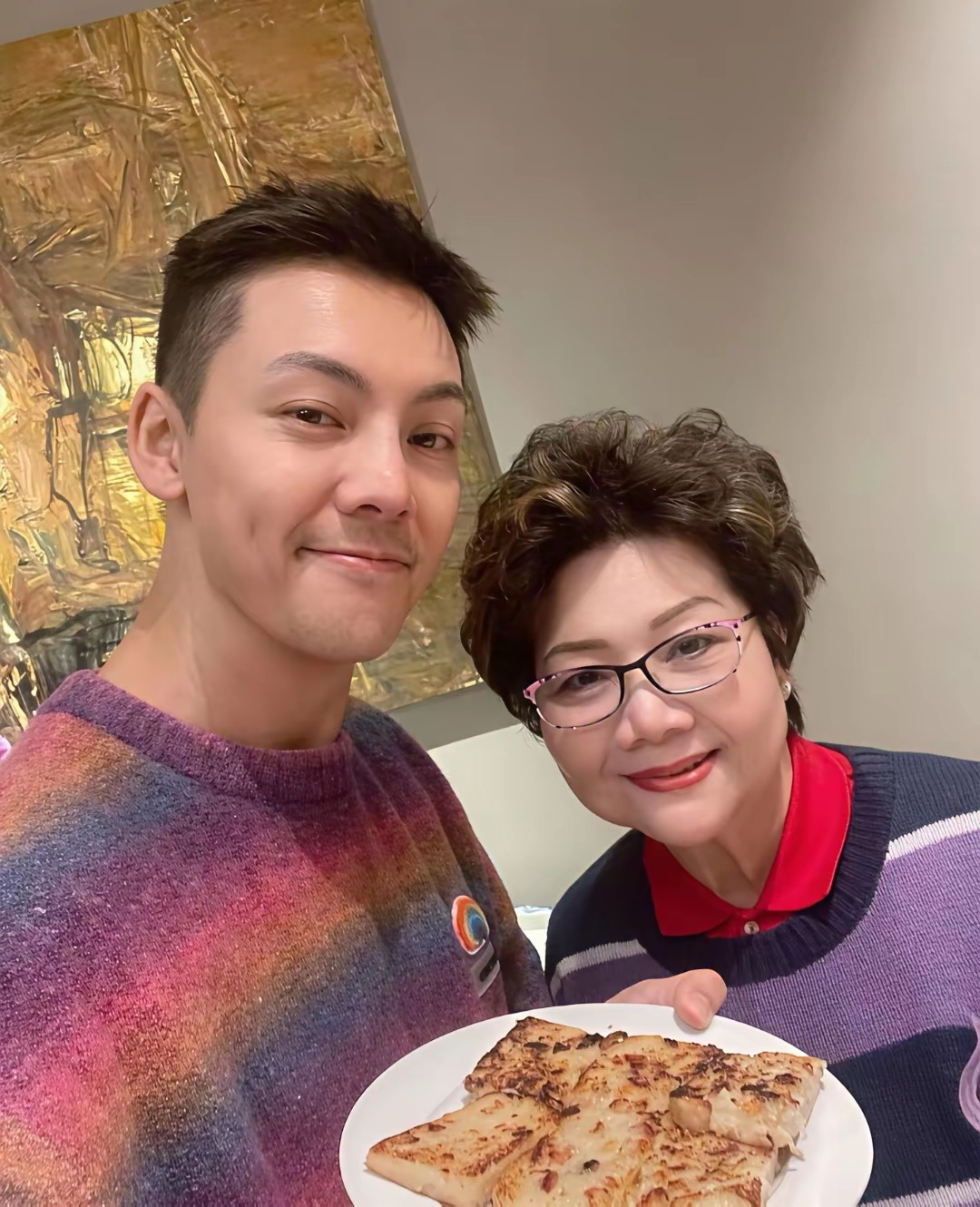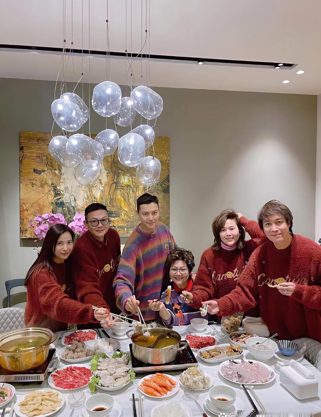 陈伟霆晒出的全家福年味爆棚!一家人都穿同款红毛衣,超温馨。妈妈站C位,富家千金优雅气场尽显,陈伟霆蹲在前头穿彩虹毛衣,帅气亮眼。