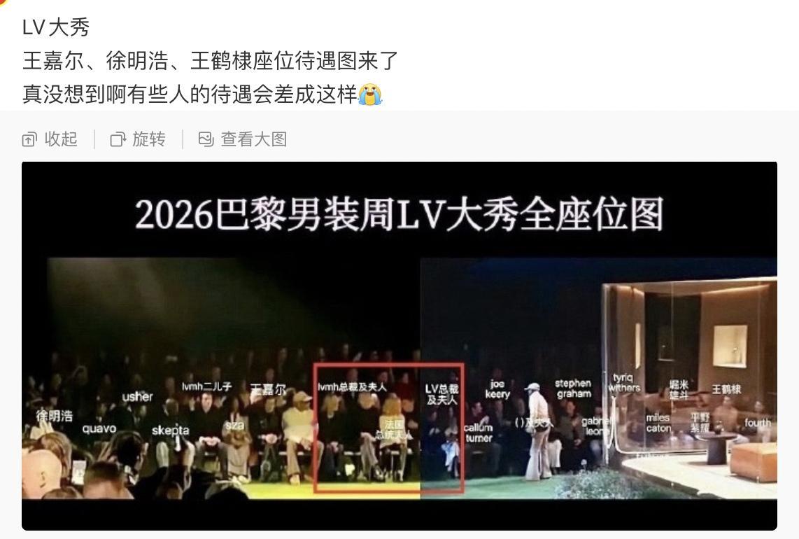 Lv大秀前:lv官博把王鹤棣放在王嘉尔前lv大秀后:王嘉尔在总裁一家旁,王鹤棣在边角落瑟瑟发抖