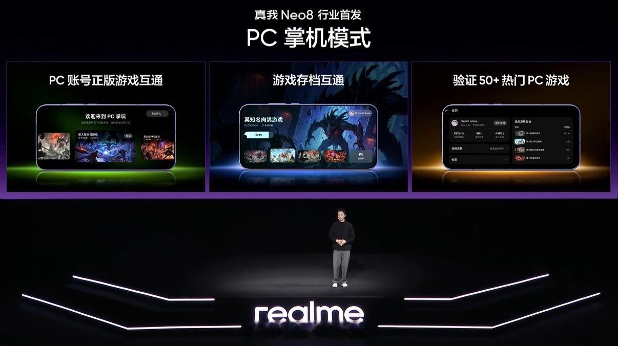 性能也是很多人关注的地方,Neo8采用了第五代骁龙8+大气流冷锋散热系统+苍穹信号芯片S1,专为游戏而生在游戏实测下,主流游戏基本都做到了满帧运行,长时间游玩也不会发热发烫同时真我还专门做了一个「极客性能面板」,无需root,可以自定义温控调节,自定义芯片频率真我还带来一个One More Thing:PC掌机模式,并非云游戏,而是基于本地运行,只需要在登录的时候联网,其余时间都不需要网络,而且支持蓝牙手柄,有点意思了