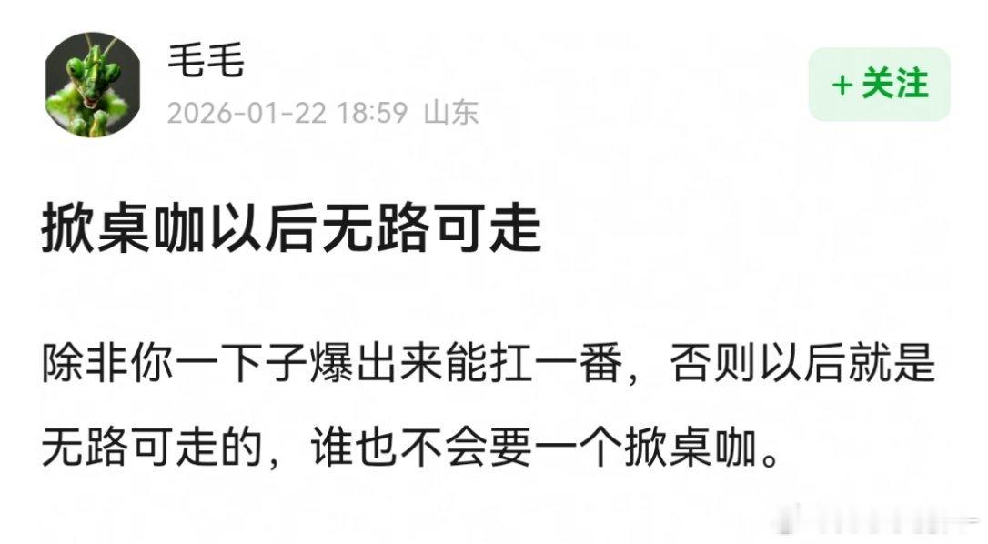 说反了,老实说 “掀桌咖”工作会变多