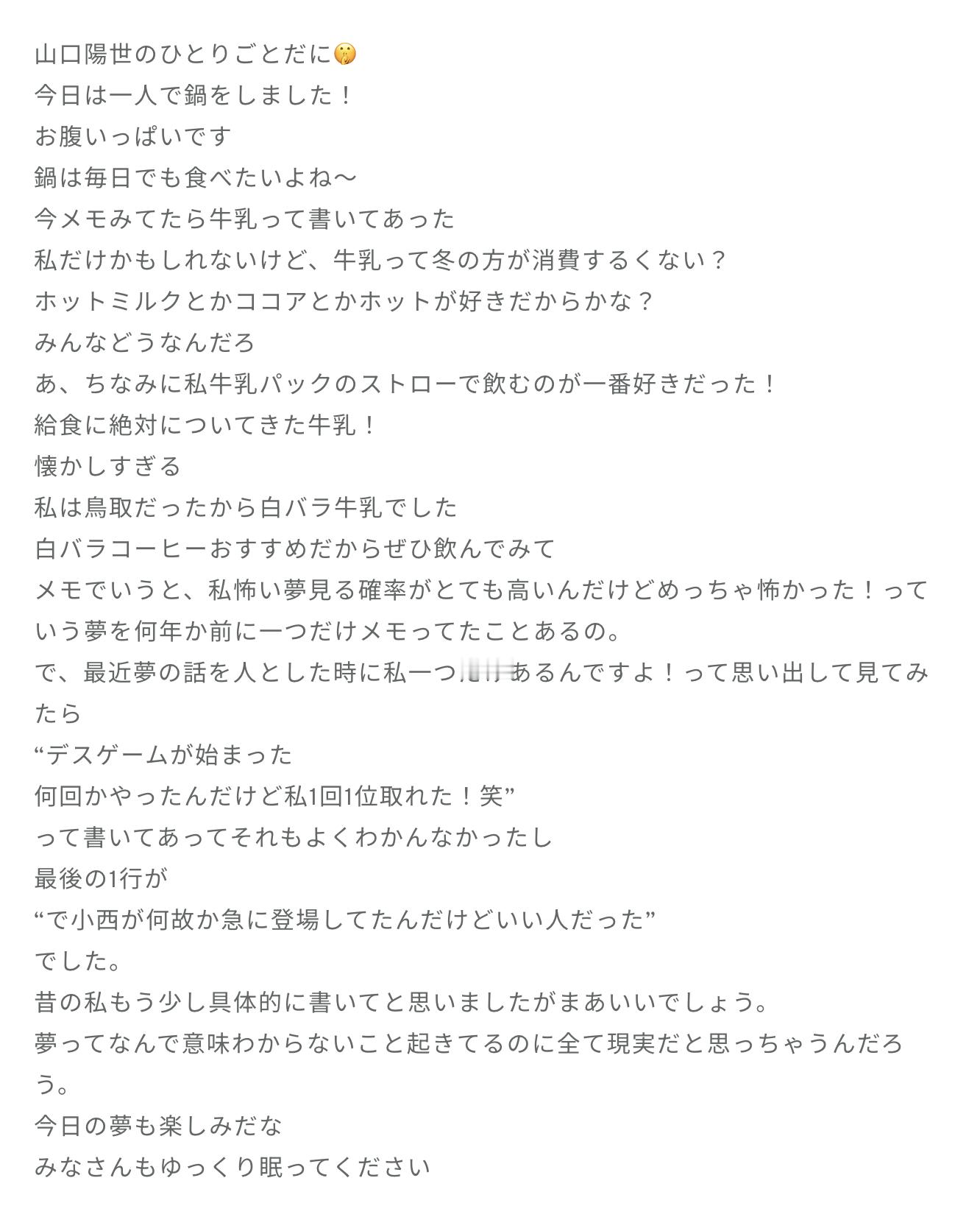 はるよ「今は眞名子 新さんの「マシかもしれない」とRADWIMPSさんの「携帯電話」を聴いています。この2曲を聴くと一人で秩父に行ったのを思い出します。また一人で知らない場所に行きたいなぁ。」
