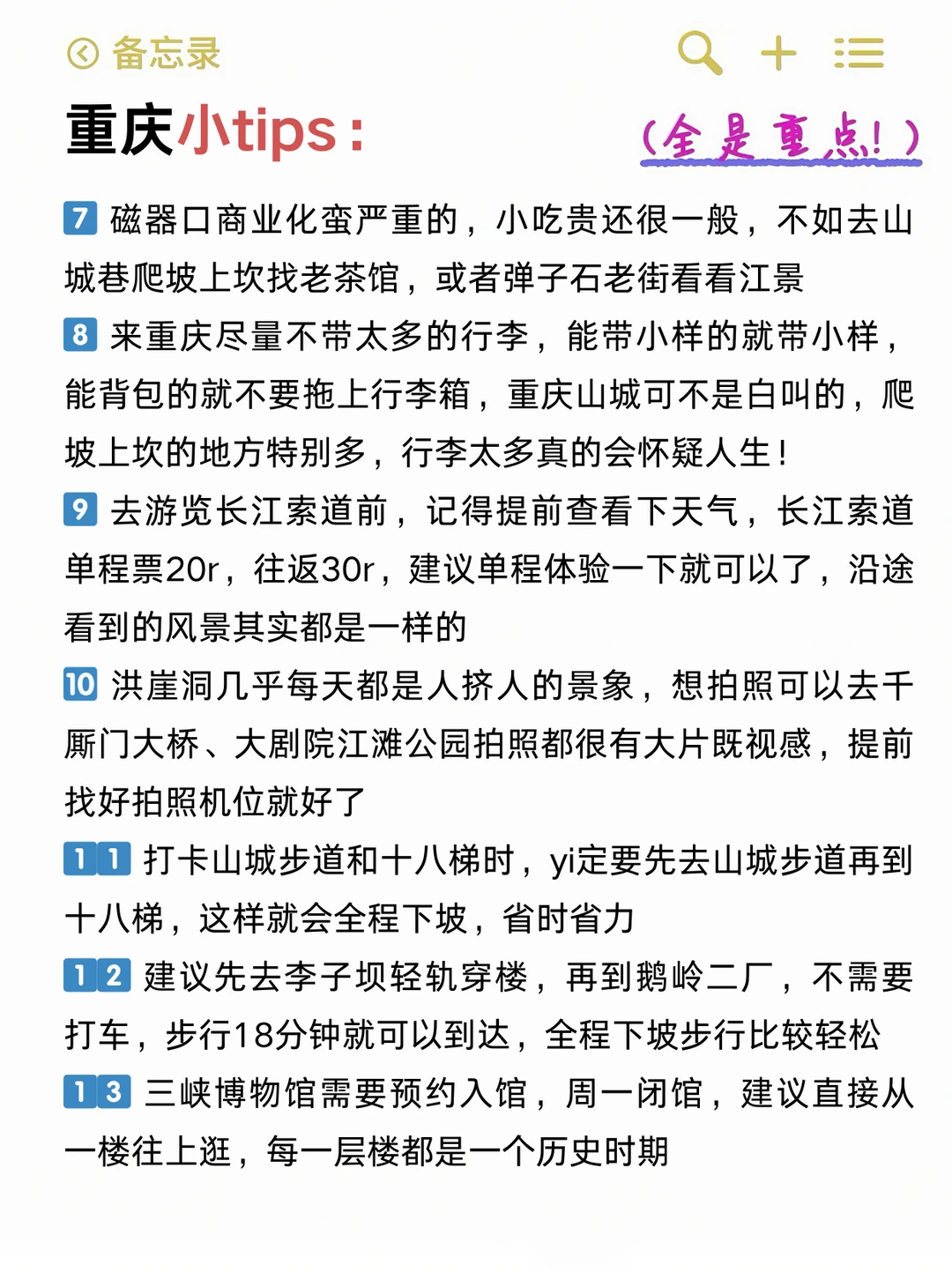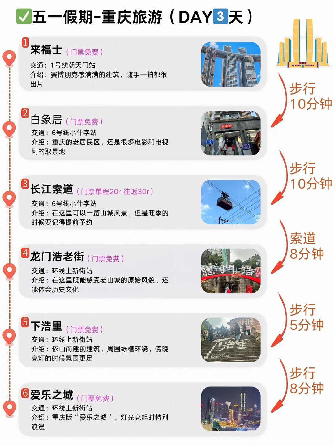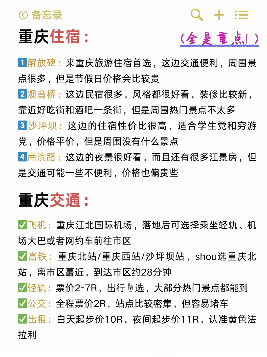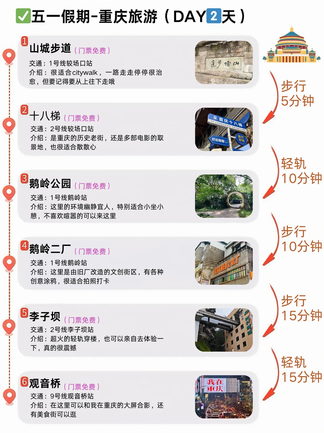 1️⃣重庆大部分景点都是免费的,有学生证的一定要带上,部分收费景点可以半价购买