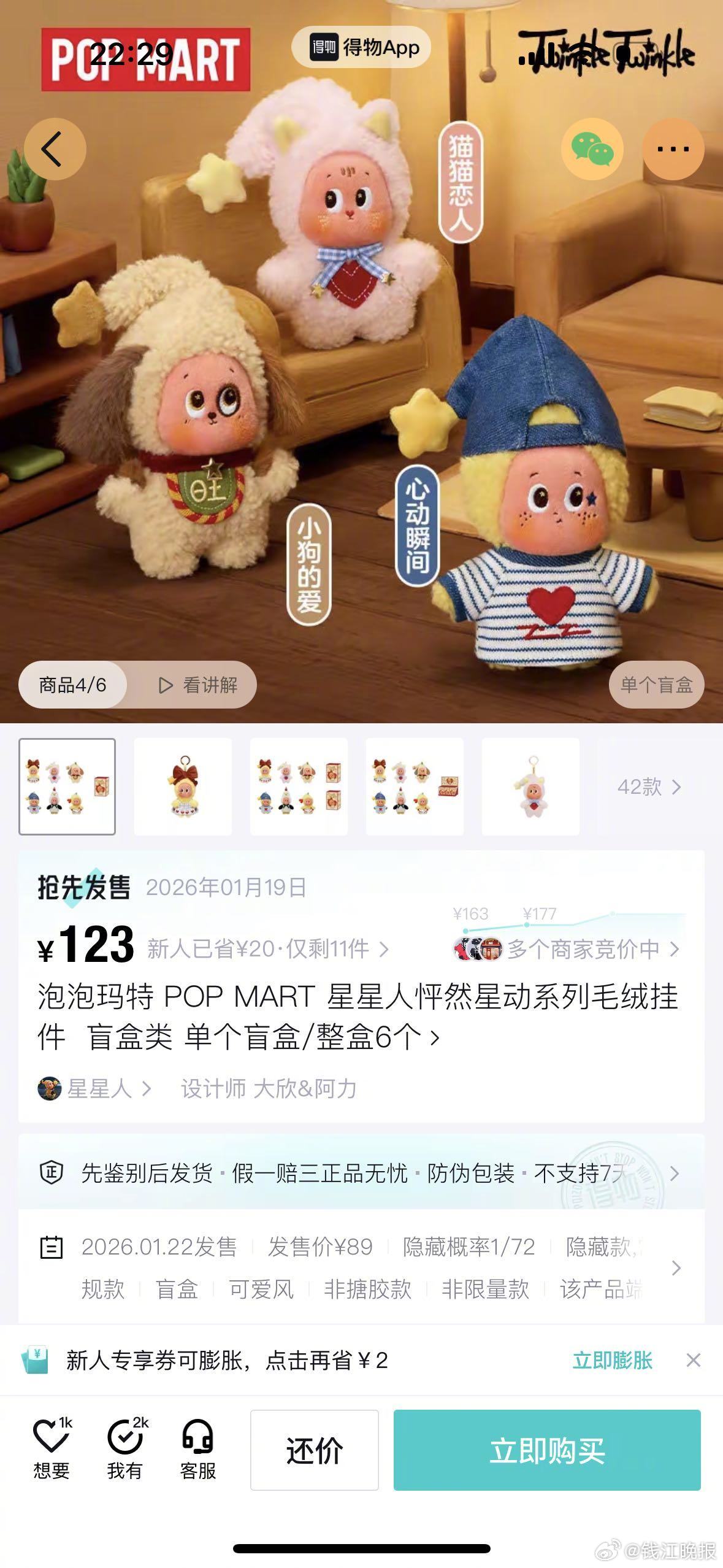 【根本抢不到,溢价50%-80%!星星人接棒 Labubu】#星星人会接棒Labubu成新顶流吗##星星人新系列上线秒售罄# 泡泡玛特旗下新晋IP#星星人#正迅速崛起,大有接棒昔日顶流“Labubu”之势,成为潮玩市场的新焦点。1月22日22:00,泡泡玛特在线上首发“星星人”IP的全新系列——怦然星动系列盲盒,毛绒挂件89元/个,搪胶毛绒公仔礼盒售价899元。该系列开售数秒内即告售罄,社交平台上相关讨论迅速刷屏,二手市场已出现明显溢价转卖现象,足见其市场热度。同时,社交平台上网友纷纷留言:“根本抢不到!”“线下门店肯定也是缺货买不到。”二手平台上则基本以溢价50%-80%转卖,隐藏款转卖价格更是高达3倍,整端价格被炒至千元。记者随即查询得物平台价格为123元/个。与此同时,曾经一娃难求的“Labubu”却显现出市场退热迹象。去年底以来,“Labubu二手价崩了”登上热搜,部分款式二手价格大幅回落。例如原价594元的Labubu坐坐派对系列,去年7月二手均价曾超1400元,如今已回落至630元左右;99元的单只盲盒在二手市场最低成交价已跌至60元,跌破发行价。潮新闻记者在泡泡玛特小程序中也发现,此前极难抢购的Labubu“前方高能”系列搪胶毛绒挂件,如今已可轻松直接购买。“前几个月人人都疯狂想要一个搪胶LABUBU,现在泡泡玛特全渠道放货,大家却又不想买了。”潮玩行业与投资分析师普遍认为,这是潮玩市场从非理性的“投资品”预期,回归到“消费品”本质的必然调整。当泡泡玛特为了满足需求而将Labubu的月产能从约1000万只大幅提升至5000万只,曾赖以维持溢价的“稀缺性”被打破,直接导致其二级市场价格崩盘。(潮新闻 记者 王景平)