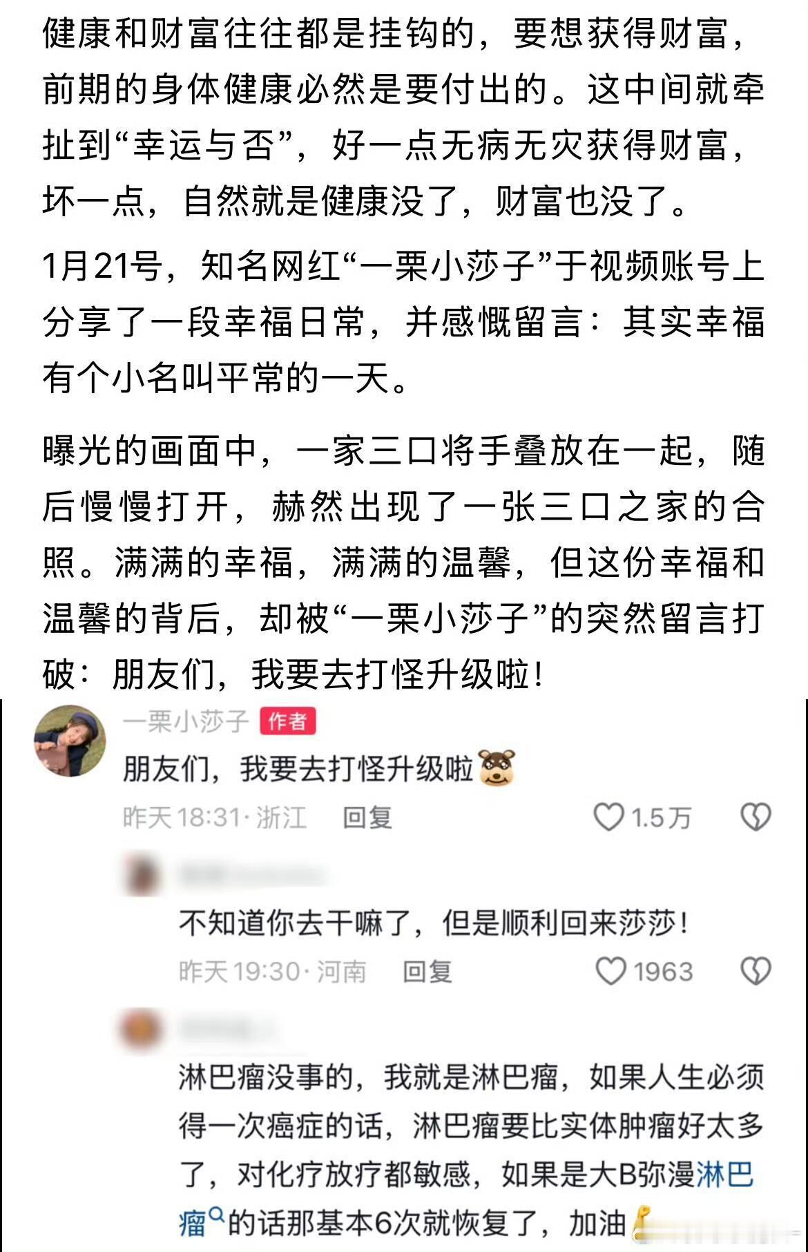 天,千万网红“一栗小莎子”疑确诊癌症