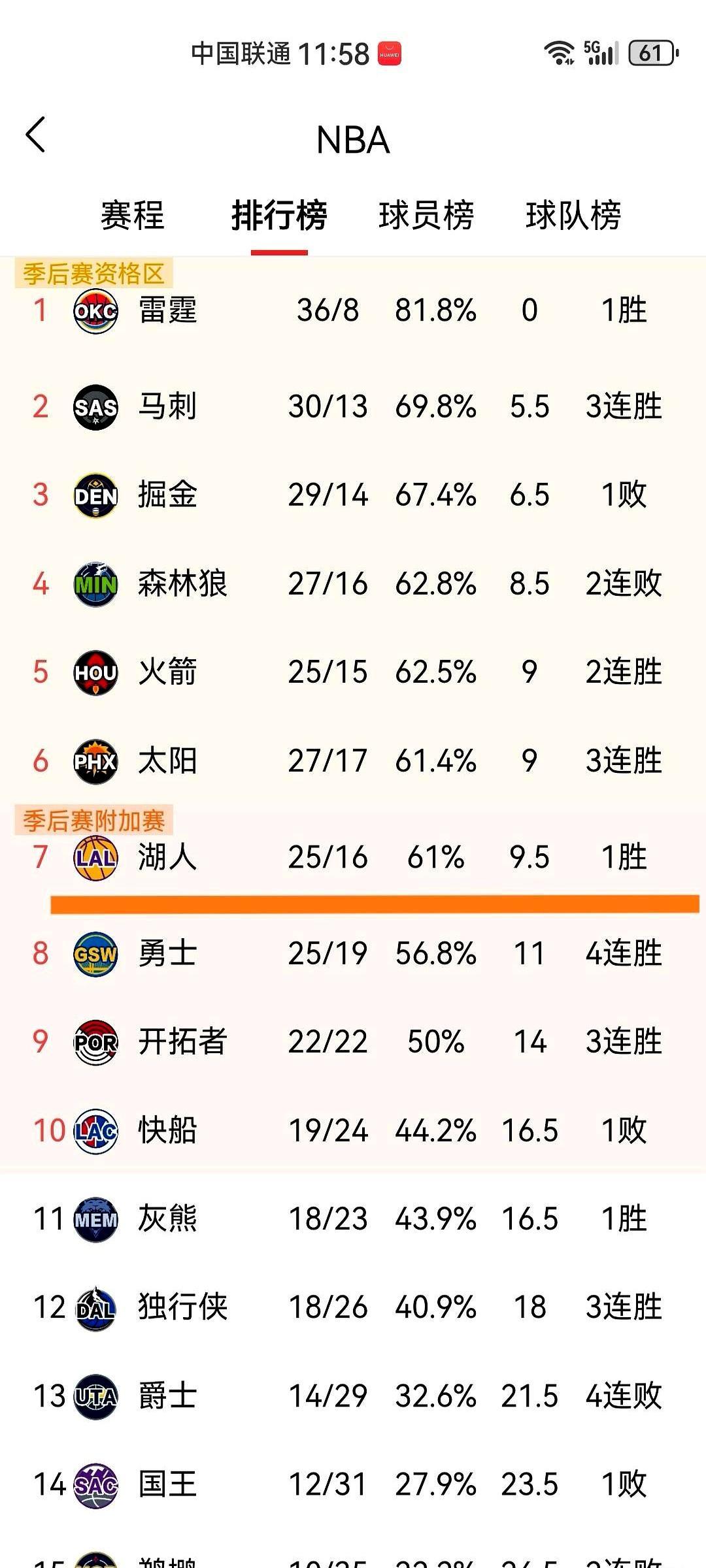 湖人排第五,却像随时要掉出前八。 雷迪克接手半年,战绩26胜16负,表面稳当,实则每场都是硬扛。西部竞争太凶,输一场直接跌两档,赢一场也难回原位。 伤病名单比轮换阵容还长:东契奇脚踝肿胀,里夫斯膝盖不适,艾顿手指缠着石膏。雷迪克赛后苦笑,首发凑不齐,只能把双向合同球员推上主力位置。 防守效率排联盟倒数第六,对手三分球几乎随便投。雷迪克把比赛录像拆成三秒一帧,反复盯漏人镜头,球员看完都沉默低头。他心里清楚,再华丽的进攻也填不满防线上的窟窿。 接下来十场比赛,六个客场,三个背靠背。更衣室墙上贴了张纸条:赢一场算赚,输一场不意外。话虽狠,没人反驳。球迷也明白,湖人现在全靠一口气撑着——这口气一旦散了,前八真就悬了。