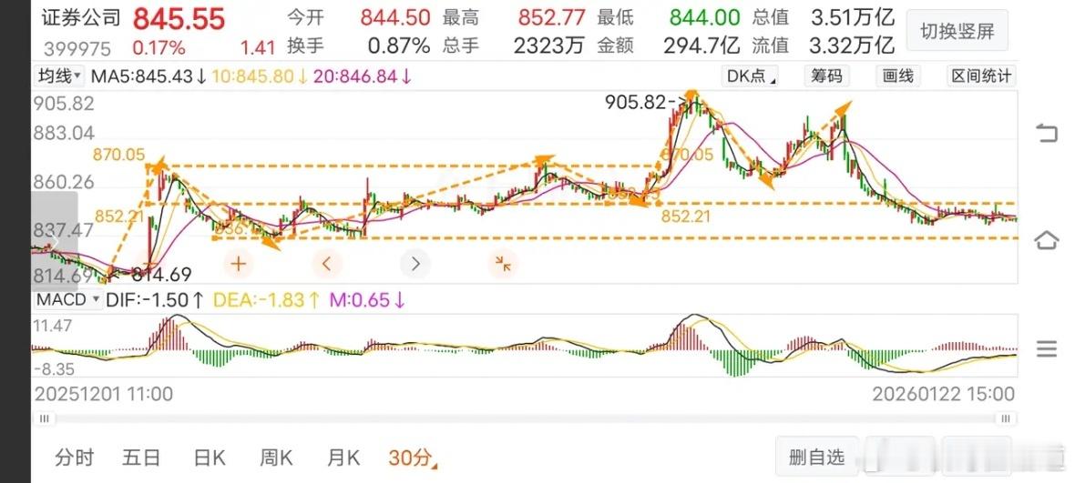 1月22日《证券》何时有行情?牛市配股《证券》是令人最揪心的事,25年熊了一年,26年开年只搞了二天就要死不活的,实在令人无语。本周连续4天亳无波澜,无量小阴小阳,主力想干嘛?要下就干脆点,要上也要爽快点,打横来耍横,专欺咱小散有意思吗?从30分走势看,本该有所反弹才合乎情理,偏偏就横着走,属螃蟹的吗?不管了,上次减仓的,分三次补仓,昨天全部回补了。再回踩年线可能要再追加仓位了。主力你要耗,我就跟你耗到底。依据基金走势情况,还能跌到哪里去,再准备5次补仓机会,主力你看够不够?玩基金就没想过你能涨多少,一年能搞个十个点以上比银行理财产品強多了,比国债还不止翻倍收益呢?所以,耐心陪主力玩,跌了就补,涨了就减,看谁耗得过谁?