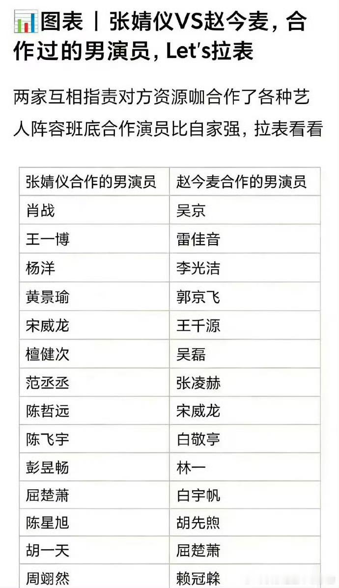 瓣组给张婧仪、赵今麦合作过的男主拉表