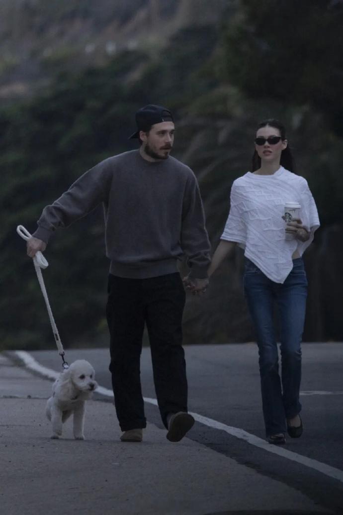 贝克汉姆大儿子风波后首现身贝克汉姆大儿子和妻子海滩散步遛狗 贝克汉姆大儿子风波后首现身,和妻子海滩散步遛狗。