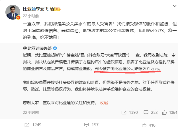 汽车博主姚*强(抖音账号“大秦军陕团”,网名姚十八),被判向比亚迪公司赔偿201万元。。。为什么这些自媒体都这么赚钱?!我得反思一下