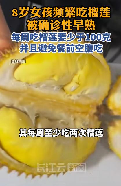 “悲剧还是发生了!”近日,福建福州,一8岁女孩的妈妈给孩子洗澡时,突然发现她的乳房出现了异常发育的迹象,带孩子就医后竟被确诊为性早熟。更令人意外的是,医生排查所有诱因后,锁定的“元凶”竟是孩子每天都在吃的榴莲!网友:吃榴莲还能性早熟? 任谁也没想到,平日里被捧为 “水果之王” 的榴莲,竟成了让福州 8 岁小姑娘出现性早熟的罪魁祸首。 孩子妈妈发现孩子身上的异常之后立马就带孩子去医院了,医生给孩子做了一系列的检查之后,孩子被确诊为性早熟,骨龄已经比实际年龄超前了近一岁,好在发现得不算太晚,还没出现更严重的发育问题。 拿着诊断报告,妈妈怎么也想不通,家里平时对孩子的饮食管得很严,炸鸡、奶茶、膨化食品这些网传会导致性早熟的东西几乎不让碰,反季水果也很少买,怎么孩子还是出现了这样的问题。 医生看着焦急的家长,开始逐一排查诱因,从日常作息到零食摄入,从保健品补充到水果种类,每一个问题都问得格外细致,妈妈也一一认真回答,排除了一个又一个可能性。 直到医生问到孩子平时最爱吃的水果,她才脱口而出:“榴莲,孩子特别爱吃,几乎每天都要吃一小块,有时候下午加餐还会再吃一点,我们想着榴莲营养高,就没限制。” 就是这句话,让医生瞬间锁定了问题的关键,综合所有检查结果和饮食情况,最终确定孩子的性早熟,就是长期过量吃榴莲惹的祸。 这件事被妈妈发到网上后,直接让网友们炸开了锅,评论区里全是满满的疑惑,有人说 “榴莲不是补身子的吗?怎么还能吃出毛病”。 有人慌着说 “我家娃也天天吃榴莲,看完赶紧停了”,还有人直呼不敢相信 “吃个水果还能性早熟?这也太颠覆认知了”。 其实儿科营养专家早就给出了专业解释,榴莲本身并不含会直接导致性早熟的外源性性激素,它的植物雌激素含量更是低到可以忽略不计。 但作为热带水果里的 “能量炸弹”,榴莲的热量数据高得惊人,孩子的身体代谢系统还在发育中,远不如成人的代谢能力强,每天都吃榴莲,多余的热量根本代谢不掉,只能在体内堆积成脂肪,而肥胖正是儿童性早熟的重要诱因。 这样的案例其实并不是个例,广州就有个 7 岁的小男孩,因为家人觉得榴莲营养好,每周给孩子吃 3 到 4 次,每次都让吃两瓣,半年下来,孩子体重超标了 20 斤,骨龄超前了 1.5 岁,也被确诊为性早熟,不得不开始饮食干预。 这些真实的案例都在提醒家长,榴莲虽好,绝不能由着孩子的性子吃,儿科医生和营养专家也联合给出了儿童食用榴莲的明确建议,其中最核心的就是严格控制食用量,每周吃榴莲的总量必须少于 100 克。 除了控量,另一个重要的食用建议就是避免让孩子在餐前空腹吃榴莲,空腹吃榴莲很容易让孩子出现胃胀、胃痛、反酸的不适症状,尤其是本身肠胃功能就偏弱的孩子,这种刺激会更明显。 而且空腹吃榴莲,其中的糖分会被身体快速吸收,导致孩子的血糖在短时间内急剧升高,随后又迅速下降。 不仅会让孩子出现头晕、乏力的情况,还会影响孩子的正常食欲,导致正餐吃不下饭,进而出现营养摄入不均衡的问题。 对于血糖调节能力还不完善的孩子来说,这种血糖的骤升骤降也会加重身体的代谢负担,不利于内分泌的稳定。 正确的吃法应该是在两餐之间,比如上午十点或者下午三点,这个时间段孩子的胃里有少量食物,吃一点榴莲当加餐,既能补充能量,又不会给肠胃和代谢添负担。 网友的疑惑其实也代表了很多家长的认知误区,总觉得水果都是健康的,多吃点没关系,却忽略了不同水果的特性,也忘了孩子的身体和成人的差异。 榴莲作为营养密度较高的水果,本身并没有错,错的是不合理的食用方式,而家长作为孩子饮食的把关人,更需要多了解一些饮食常识,关注孩子的身体变化。 哪怕是一点点细微的异常,都要及时重视。毕竟对于孩子的成长来说,健康永远是第一位的,而科学、均衡的饮食,就是孩子健康成长的重要基础。 对于这件事,您有什么想说的吗?欢迎评论区留言讨论。 信源:长江云新闻2026-01-19——《8岁女孩因频繁吃榴莲被确诊性早熟》