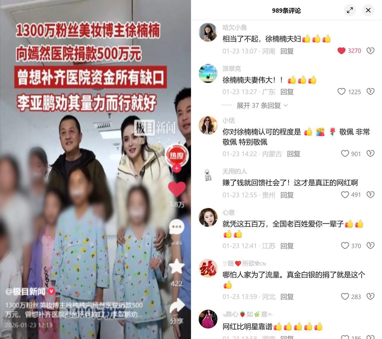 徐楠楠这500万捐得有点笨,没挂在热搜上立公益人设,却是能让1111个唇腭裂孩子重新笑的手术台。 千万粉丝的美妆博主,本来想把嫣然医院的运营缺口全补上,被李亚鹏劝着别硬扛,最后捐了500万定向支持重建。 这钱得拆开算细账:嫣然基金救一个唇腭裂孩子平均4500块,500万就是1111个新嘴唇;可医院的难在哪儿?基金的钱只能做手术,房租、物业费早欠了3000多万,再拖下去,连手术台都要没了。 现在网上总说网红公益都是作秀,可徐楠楠没搞那套,她没拍蹲在医院哭的视频,没写感动自己的小作文,就把1300万粉丝的信任,换成了最实在的东西:让医院能继续开,让孩子能排上号。 大家夸她赚得干净、比明星靠谱,说到底,善意最值钱的不光是多感人,更是能不能落地。 你看,这500万没上慈善榜的头条,却能让1111个孩子长大以后,笑着说我小时候有个阿姨帮我重新学会了笑,这样的钱,该她赚吧?