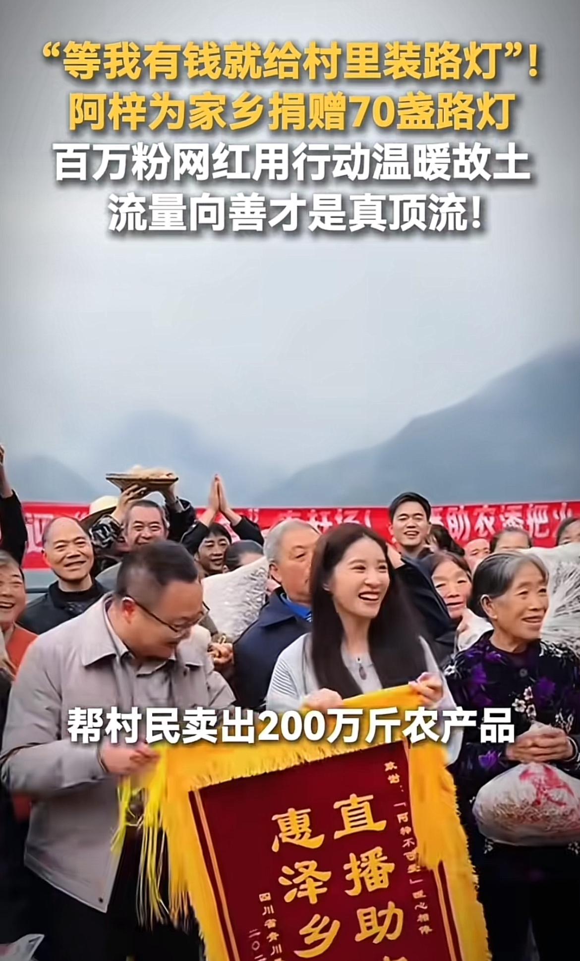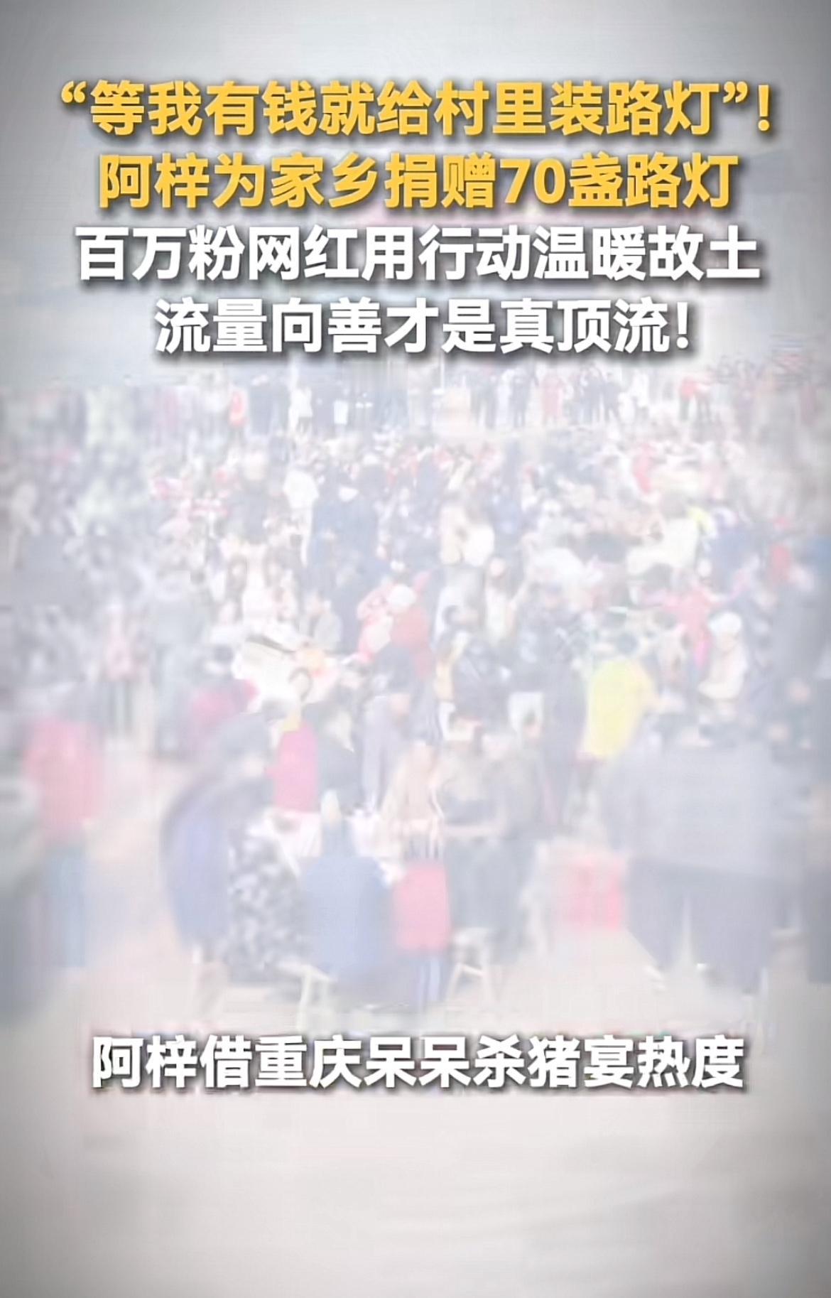 网红啊梓说等有钱了就给村里面装路灯,这想法挺暖心的。现在很多网红火了之后,就只顾着自己赚钱享受,啊梓心里还惦记着村里,这点就挺难得。 想象一下,要是村里装上路灯,晚上出门就不用摸黑了,孩子们也能在路灯下开心玩耍。这不仅方便了村民的生活,还能让村子更有烟火气。希望啊梓能早日实现这个愿望,也希望更多网红能像他一样,有点社会责任感,用自己的影响力为家乡做点实事。