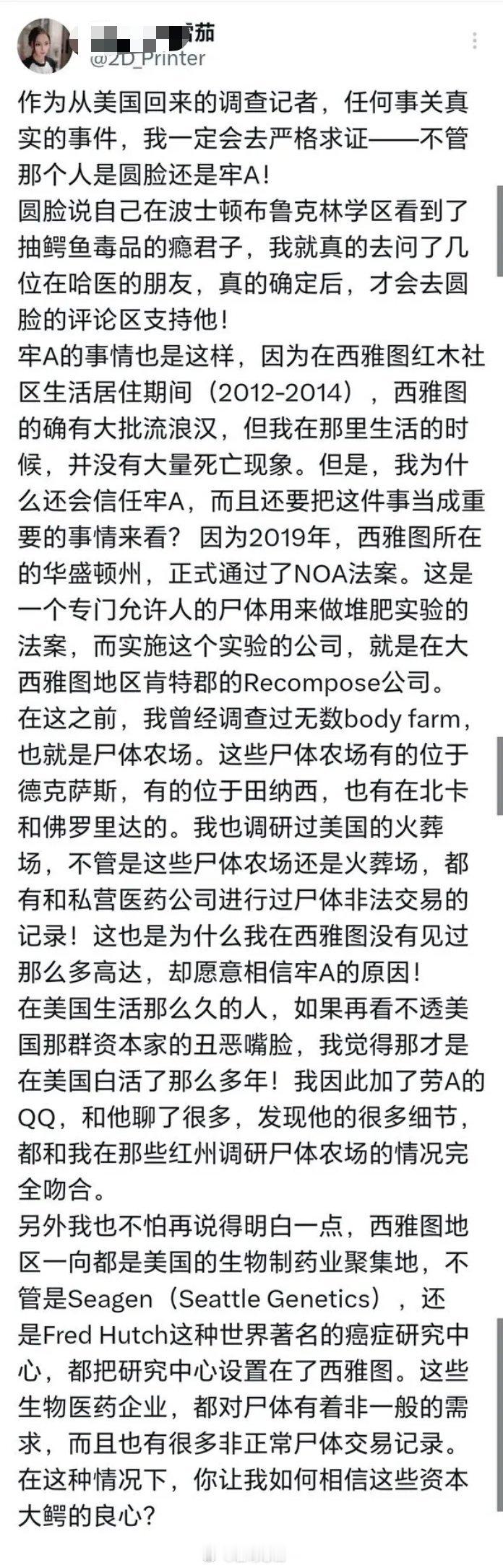很多西雅图的留学生证实,华盛顿州推出的 NOR 法案是助长西雅图区域尸体交易和收尸队存在的基础,另外自 次贷危机后,西雅图经济的恶化与制造业的衰败,也是导致大量失业人员跌入斩杀线的重要原因。