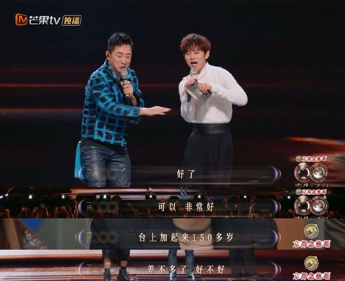 何炅 台上加起来150多岁差不多了建议把“150岁天团”的表演刻入行业教科书!何炅、庾澄庆、欧阳靖示范了资深艺人最体面的营业方式:不强行逆龄,而是把岁月变成舞台上的幽默素材,让每个动作都带着“我经历过但我仍在场”的史诗感。