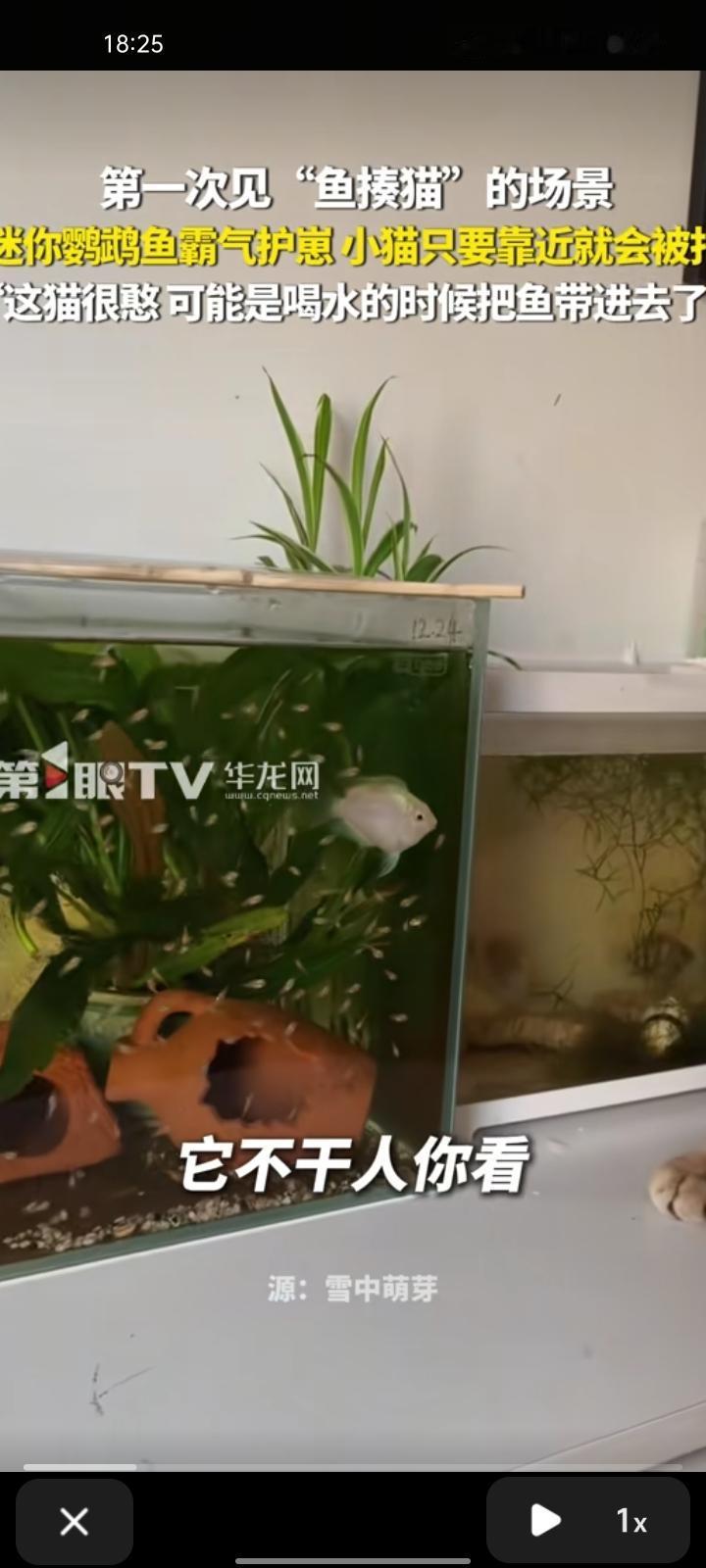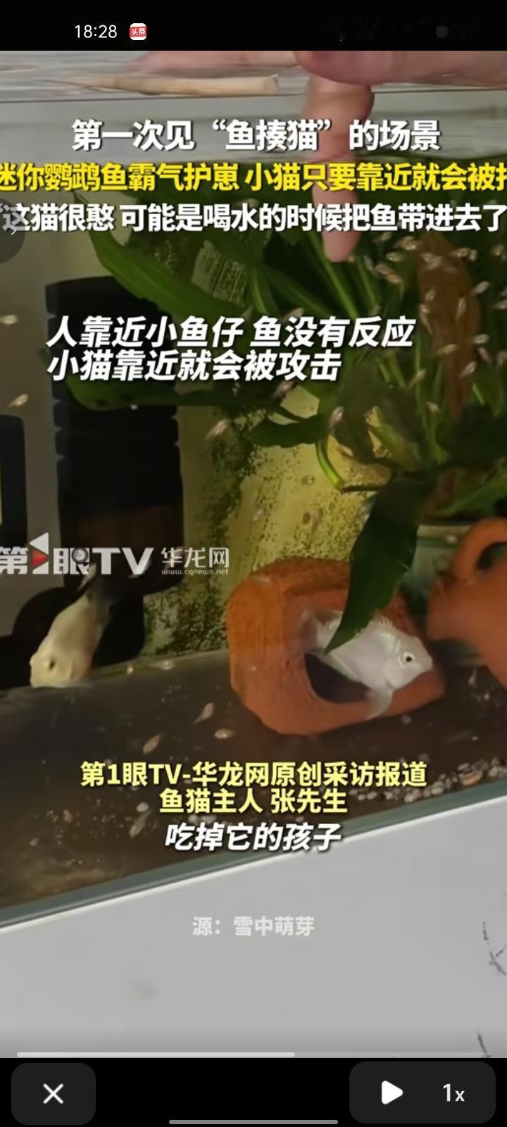 1月23日,陕西渭南。网友发视频称,这是第一次见到“鱼揍猫”的场景,迷你鹦鹉霸气护崽,小猫只要靠近就被打。 主人张先生称,这些小鱼是12月24日生的,其实这猫天天都被鱼打,已经十几天了。它主要是早上晚上比较无聊,会在鱼缸附近玩一会,白天它就不来。鱼之所以攻击猫,它还是保护自己的孩子的,没看到猫吃掉它的孩子。