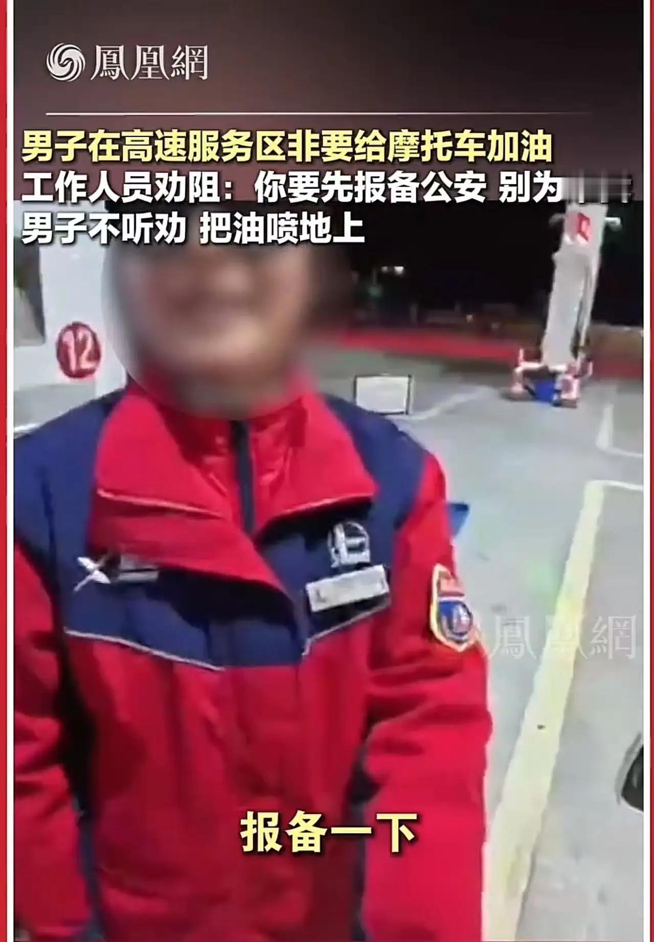 男子在高速服务区非要给摩托车加油,加油员劝阻:“你要先报备公安,别为难我!”可是男子不听劝,把油直接喷在地上!网友:这男的真不是个爷们,为难一个小姑娘!这规矩又不是她定的! 高速服务区的一场争执,让网友们看得火冒三丈。一名男子骑着摩托车要加油,加油员小姑娘提醒他“按规定得先去公安报备”,可男子不仅不听劝,反而把油直接喷在地上,对着小姑娘大喊大叫。网友们纷纷怒斥:“有本事冲规矩去,跟一个打工的小姑娘较劲,算什么爷们?” 事情发生在某高速服务区的加油站。监控显示,当天下午,一名中年男子骑着摩托车来到加油机前,喊着要加满油。当班的加油员小李(化名)赶紧上前解释:“大哥,按规定摩托车加油需要先到服务区公安值班室报备,登记信息后才能加,您稍等一下,我可以告诉您怎么走……” 话还没说完,男子就不耐烦地打断:“哪来那么多规矩?我之前加油都不用报备,你就是故意刁难我!”小李耐着性子继续解释:“这是全国高速服务区的统一规定,主要是为了安全,我要是不按规定加,会被处罚的,您体谅一下……” “体谅?我看你就是不想给我加!”男子突然发了火,自己拿起加油枪,拧开摩托车油箱盖,却没往油箱里加,而是对着地面猛喷了几下,汽油溅得满地都是。他还指着小李骂:“现在能加了吗?刁难我是吧?我看你这工作是不想干了!” 小李吓得往后退了几步,眼圈都红了,却还在小声说:“大哥,这真的不行,地上有火星很危险……”周围的车主看不下去,有人上前劝说:“小伙子,人家小姑娘也是按规矩办事,你别为难她啊。”可男子根本不听,骂骂咧咧了好一会儿才骑车离开,留下满地油污和委屈的小李。 这段监控被发到网上后,评论区瞬间炸了锅。有网友怒怼:“自己不懂规矩还耍横,把气撒在一个打工妹身上,这操作太掉价了”;也有人说:“高速加油有规定,人家小姑娘只是执行者,冲她发火算什么本事?”还有人替小李委屈:“每天面对各种顾客,遵守规矩反而被欺负,换谁心里不难受?” 其实,出门在外,谁都可能遇到需要按规矩办事的情况。规矩的存在,或许有时会让人觉得麻烦,但多数时候是为了保障安全和秩序。就像这位加油员,她既不是规矩的制定者,也没有权力打破规矩,能做的只是按章办事。 而真正有格局的人,懂得体谅别人的难处。就像网友说的:“有问题解决问题,有情绪别冲无辜的人发泄。对着小姑娘撒火,不仅没风度,更显露出自己的无能。” 希望这场争执能给更多人提个醒:守规矩是基本素养,体谅他人是处世之道。别让一时的冲动,暴露了自己的格局。毕竟,尊重别人,才是对自己最好的尊重。 高速服务区那些事 遵守规则