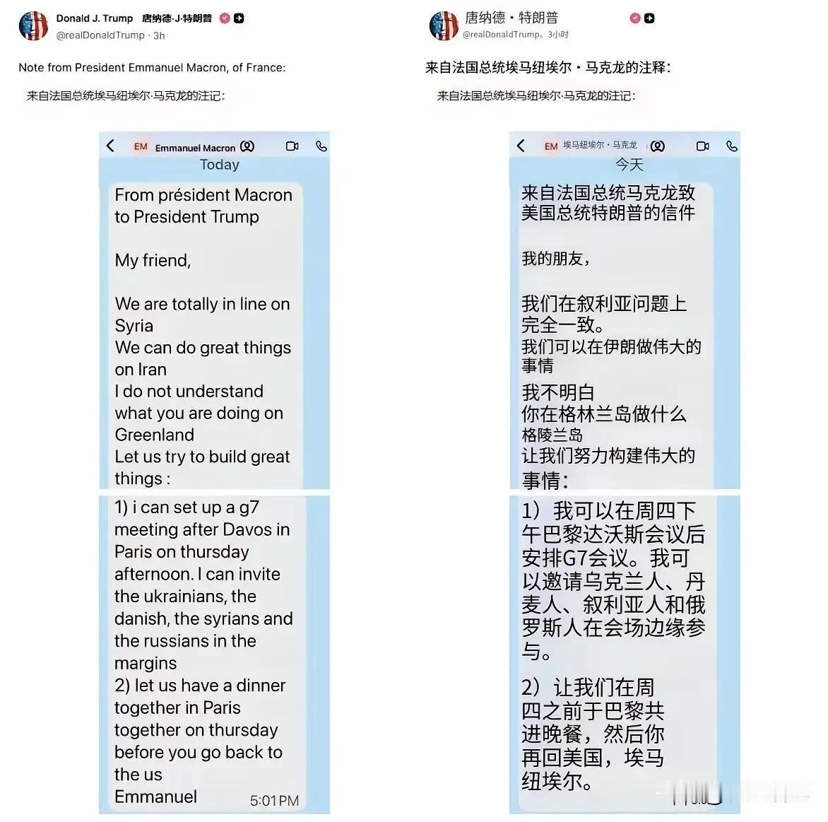 法国总统马克龙和北约秘书长吕特被特朗普架在火上烤, 由于欧洲向格陵兰岛派兵,导致特朗普大为不悦,所以才有了马克龙和吕特给特朗普发短信这一段。 但万万没想到的是,特朗普转脸就把所发的信息公开了出来,在信中,马克龙也没有了强硬的姿态,而吕特更是为美国马首是瞻,这种180度的大转变,也引起了欧洲网友们的不满,看来这两位以后在欧洲的声望,将要走下坡路了。